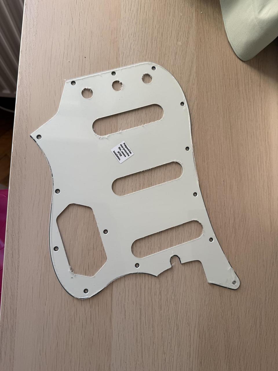 Prodám zcela nový, na míru vyrobený pickguard na Bass VI od thepickguardshop.com. Parchment / tedy lehce “zašlá” bílá, 3ply, 60s bevel, kvalitní materiál, žádnej lacinej šit z aliexpressu. 14 děr. Jen jsem si bohužel blbě změřil pár věcí a nepasuje na můj nástroj (USA Custom Shop), bude to ale sedět na Squiery i Fender Vintera. Je to tragický příběh toho, že jsem trouba.