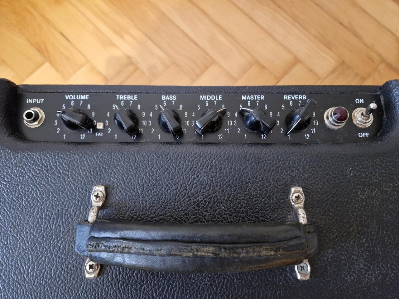15 Wattové celolampové kombo osazené 12 palcovým reproduktorem Fender / Eminence Special Design. V jeho preampu naleznete tři elektronky typu 12AX7, srdcem koncového zesilovače jsou dvě lampy EL84. Hrané na koncertech max do 40% výkonu (blues) a posledních pár let jen jako koncák k lampovému preampu. Reverb nějak vypadává, asi kontakt. Neřešil jsem, protože jsem nepotřeboval. Je hrané a tudíž má drobné oděrky, ale jinak je naprosto spolehlivé a zvuk má, jak má být. K němu přidám stojan na kombo, a jedné noze chybí guma, ale stojí normálně a negingle se. Důvod prodeje: Přechod na Kemper