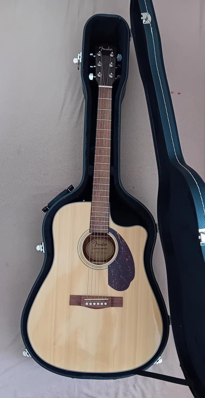 Prodám elektroakustickou kytaru Fender CD-140SCE DREAD, NAT WN s pevným pouzdrem Fender. Má kvalitní elektronikou Fishman, přední deska kytary je zhotovena z masivního smrku, zadní deska a luby z laminovaného ovangkolu. K mahagonovému krku je přilepen hmatník z ořechu.