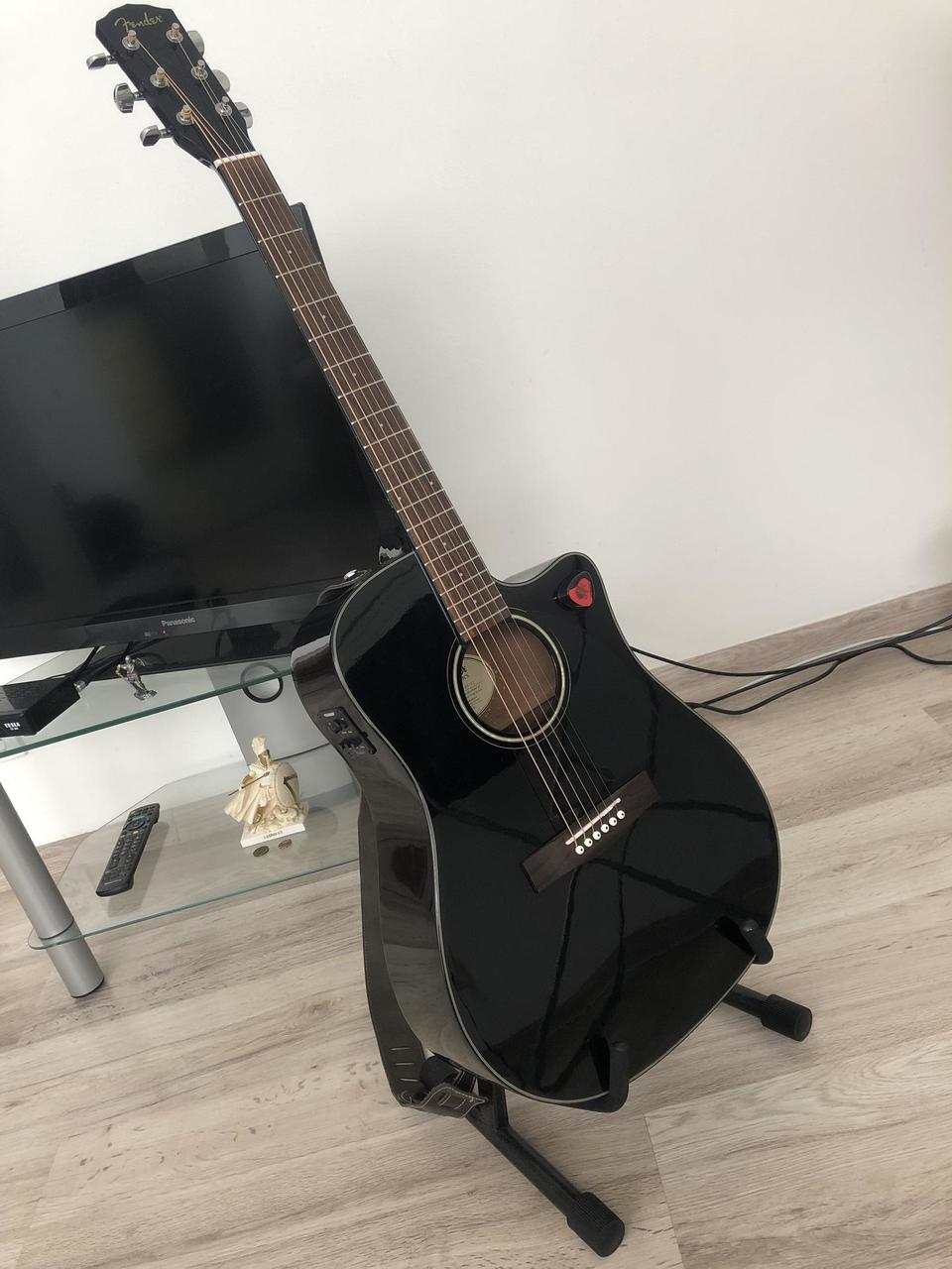 Prodám elektroakustickou kytaru Fender ve skvělém stavu. Ke kytaře také kožený popruh Fender 2" Essentials hnědý a stojan na kytaru Cascha HH 2069. Ke kytaře je také připevněn zásobník na trsátka Dunlop. Osobní předání možné v Ostravě.