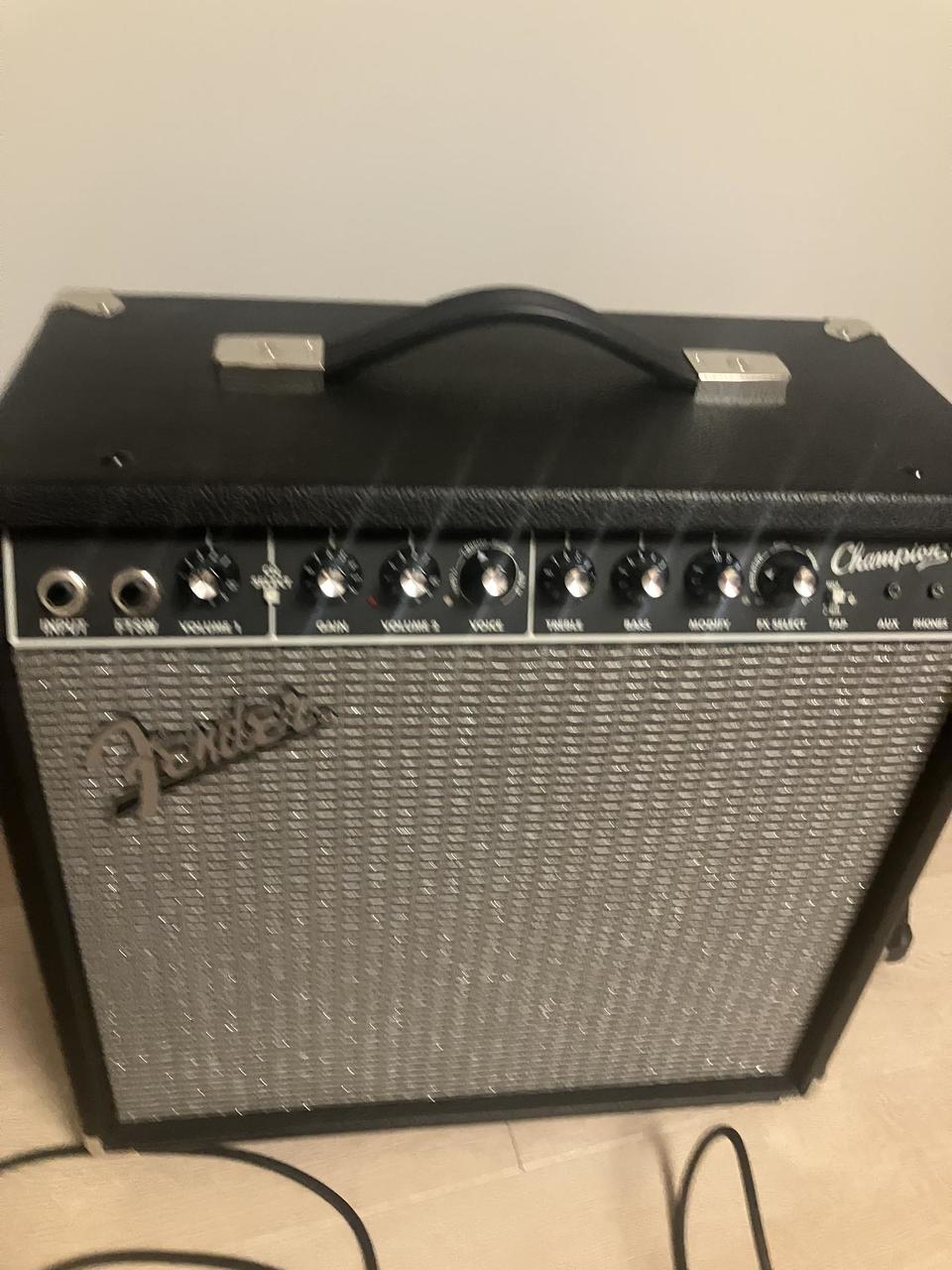 Prodám fender champion 50. Jedná se o tranzistorové kytarové kombo s výkonem 50 wattů. Kupované na jaře minulého roku. Ke kombu přidávám nožní přepínač na přepínání kanálů.(Tlačítko na reverb/efekty nefunguje, přepínač je primárně na jiné kombo). Samotné kombo je bez závad a hraje krásně doma i na zkušebně. Z důvodu ukončení kapely pro něj nemám využití tak doufám že se dostane do lepších rukou.