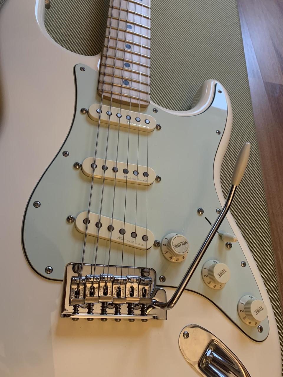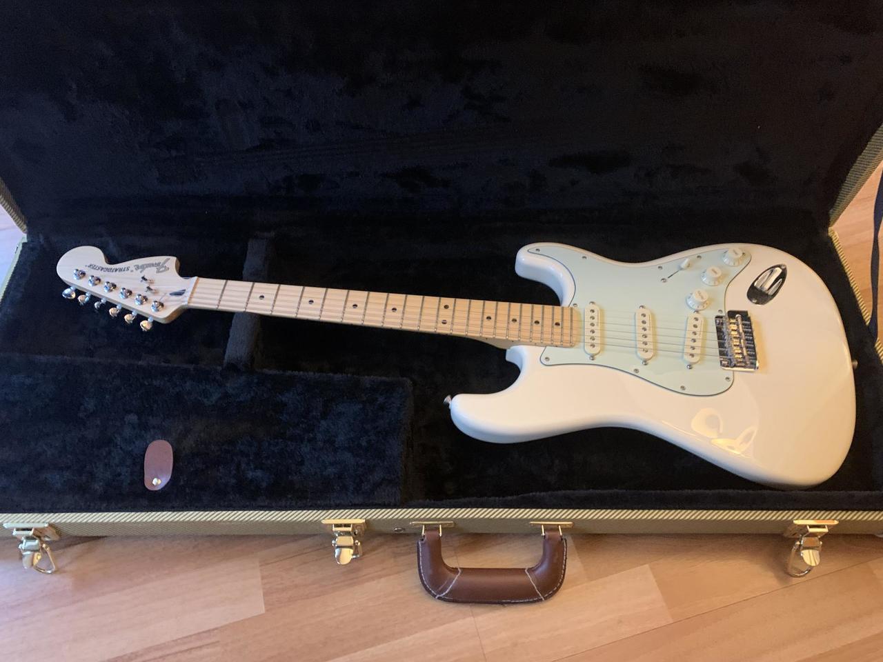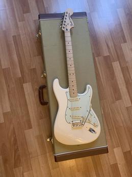 Prodám hezký mexický Stratocaster v barvě Olympic White. Stav jako nový. Kufr není originál Fender tweed, jen kopie. Osobní předání možné v Praze.