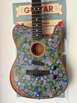Prodám velmi málo používanou kytaru Fender Acoustasonic Telecaster Blue Flower. Akustické simulace Fishmann Aura a elektrické zvuky singlového snímače, vše v jednom.