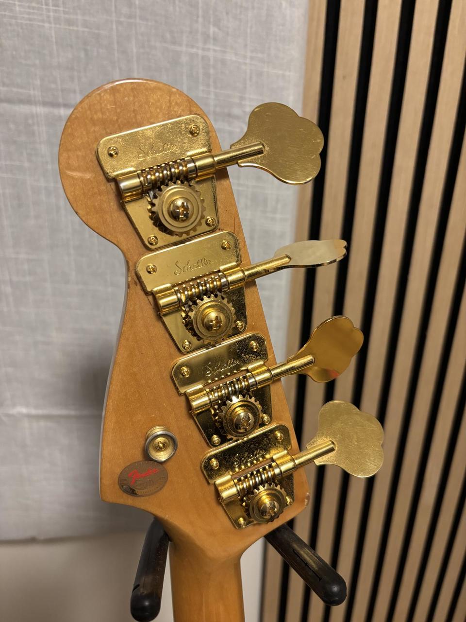 Prodám svůj JazzBass. Limitovaná edice The Ventures se vyráběla v Japonsku v letech 1996-1997 a bylo vyrobeno cca 500 ks. 10 let je to moje hlavni hrací basa, takže má známky opotřebení. Udělal jsem tyto modifikace: snímače Nordstrand Vintage Passive, mechaniky a kobyla Schaller. Původní snímače byly zvukově ploché a mechaniky nedržely ladění. Basa je seřízena na komfortní dohmat, loni jsem nechával přebrousit pražce. Přidám i náhradní černý pickguard, černé zámky na popruh a plátěný obal na převoz. Nataženy nové struny D’Addario Nickel 45-100. Basa je připravena naskočit do akce. Váha 4,9 kg. Je to super nástroj. K vyzkoušení ve Zlíně. Pro podrobnou specifikaci si do přiloženého odkazu zadejte sériové číslo 50266.