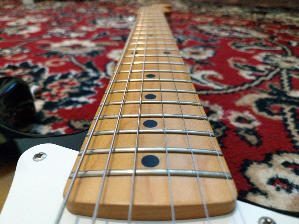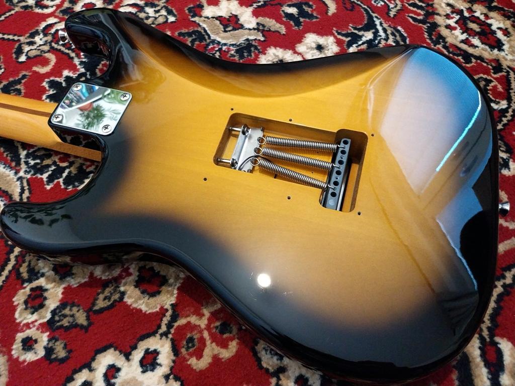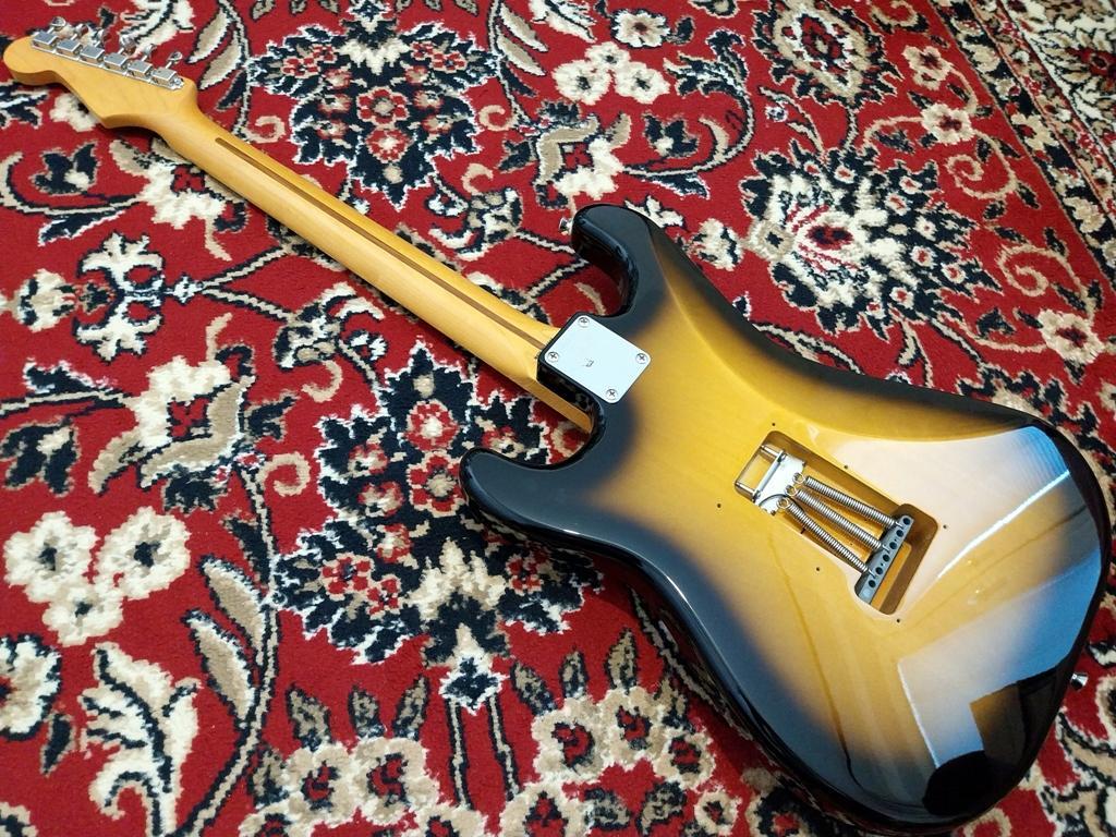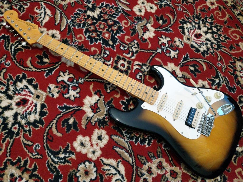Prvý majiteľ, všetko pôvodné, vrátane gig bagu a všetkého príslušenstva. Výmena pôvodnej elektroniky za kvalitnú (Arty's ST HSS Solderless Prewired Harness - detaily na vyžiadanie). Pôvodná elektronika bude priložená v gig bagu. Gitara udržovaná, čistá, nastavená, hraná len doma. Viac fotiek na vyžiadanie.