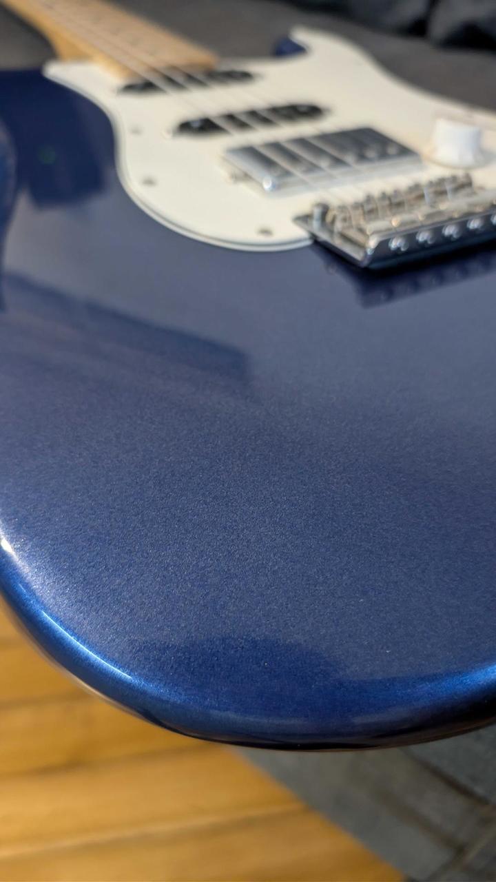 Kytaru jsem zakoupil na Kytary.cz v srpnu 2025. Je v perfektním stavu, bez škrábanců, mám k ní původní obal. Možnost zaslání zdarma nebo osobní odběr v Praze 7. Barva: Daytona Blue (limitovaná edice) Tělo: Olše (Alder) s lesklým polyesterovým lakem Krk: Javor (Maple), profil „Modern C“ Hmatník: Javor (Maple) Rádius hmatníku: 9.5" (241 mm) Frets: 22, Medium Jumbo Nut: Syntetická kost, šířka 42 mm Menzura: 25.5" (648 mm)