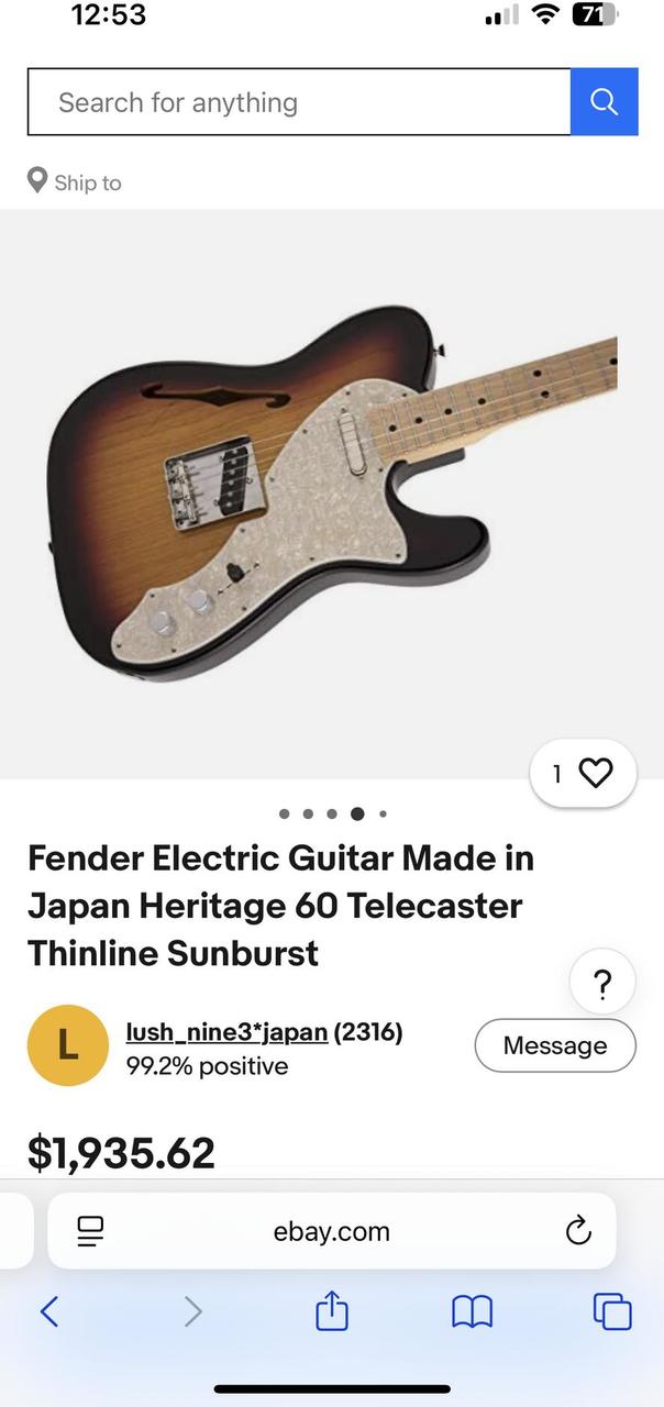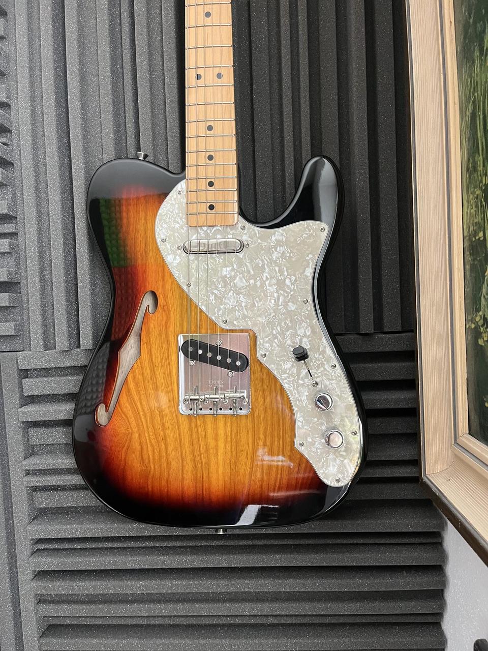 Nevyužitá Vymenim za strat ci superstrat Predám Fender Made in Japan Heritage ’60s Telecaster Thinline – 3-Color Sunburst. Vyššia japonská séria Heritage – vintage špecifikácia, výborné spracovanie a zvuk. Gitara má poloduté telo (Thinline), je ľahká, rezonantná a veľmi príjemná na hranie. Špecifikácia: – ash body, nitro lak – vintage 7.25” radius – 60s C profil krku – originál Fender MIJ Heritage snímače – 3-saddle kobylka Všetko plne funkčné. Vhodná najmä na blues, rock, clean/crunch zvuky sle zvladne aj vyssie gainy. Dohoda