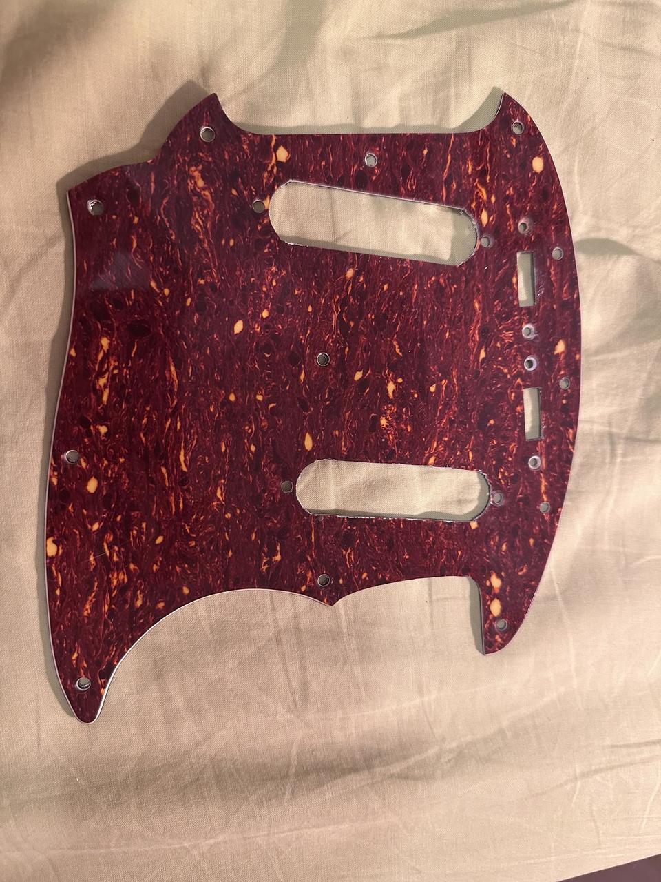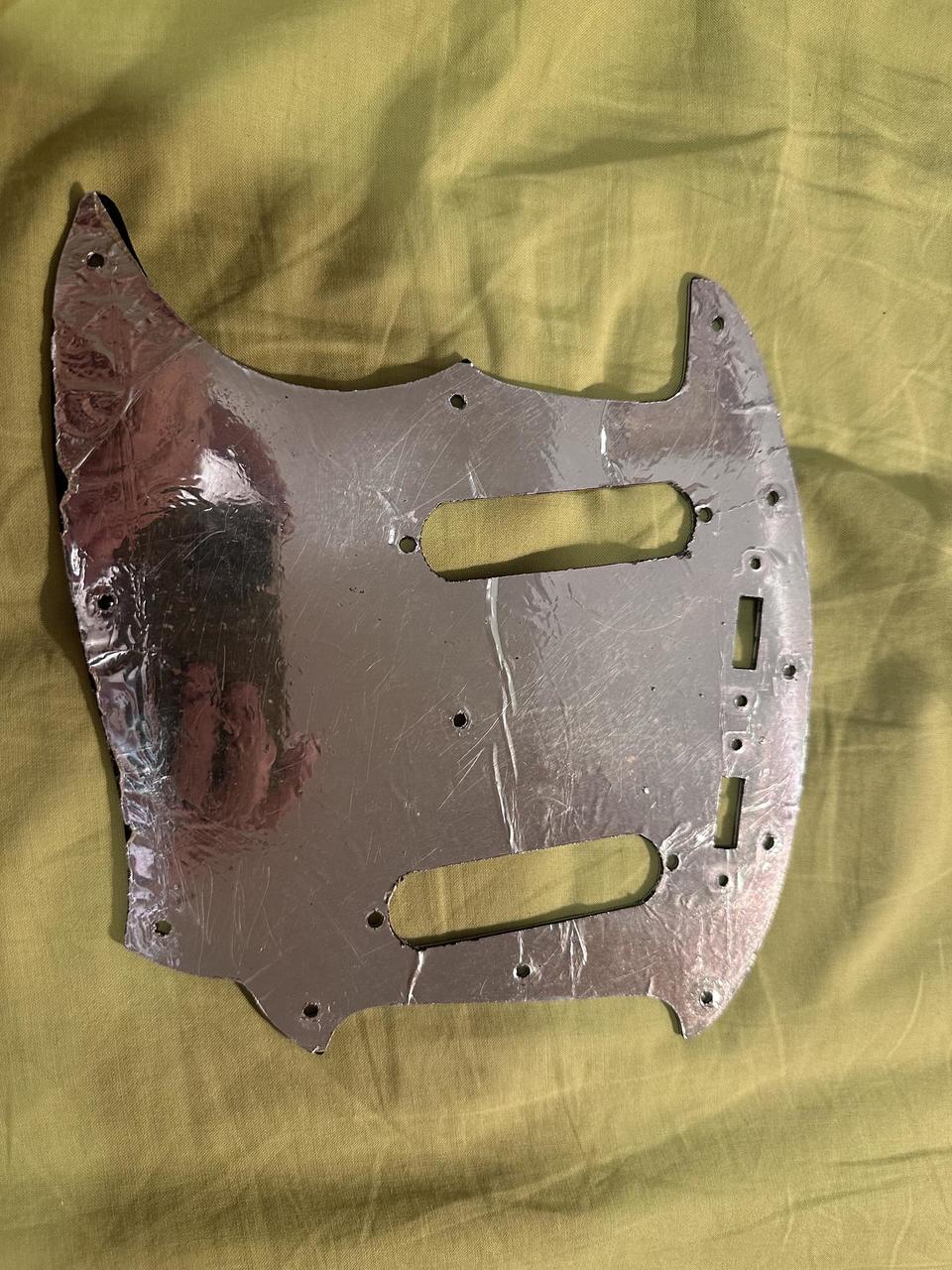 Fender Mustang pickguard ze 70’s. Je vidět, že už něco zažil a je podlepený stíněním, ale třeba by se někomu šiknul na starší kousek.