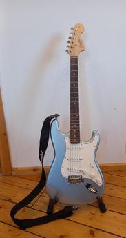 Prodám elektrickou kytaru Fender Squier, 21 pražců, pasivní single snímače. Kytara je v pěkném stavu, bez škrábanců a seřízená. Cena je včetně popruhu a zámků Fender. Možno vyzkoušet v Aši.