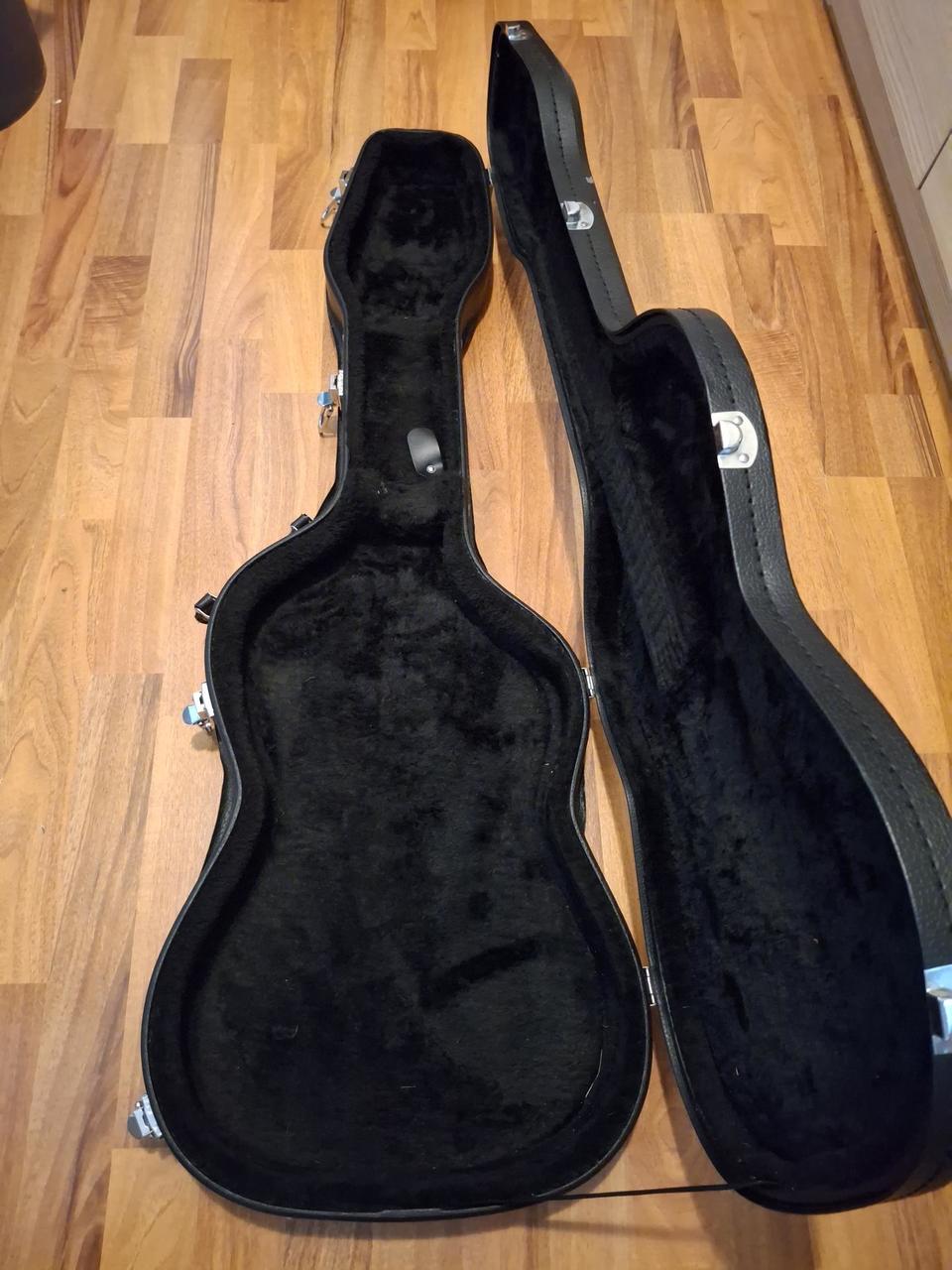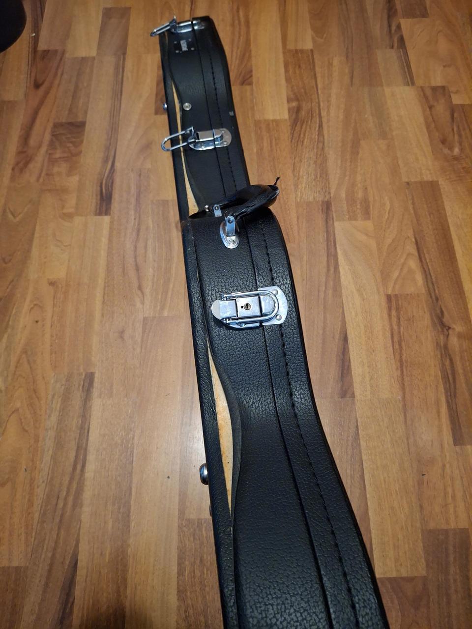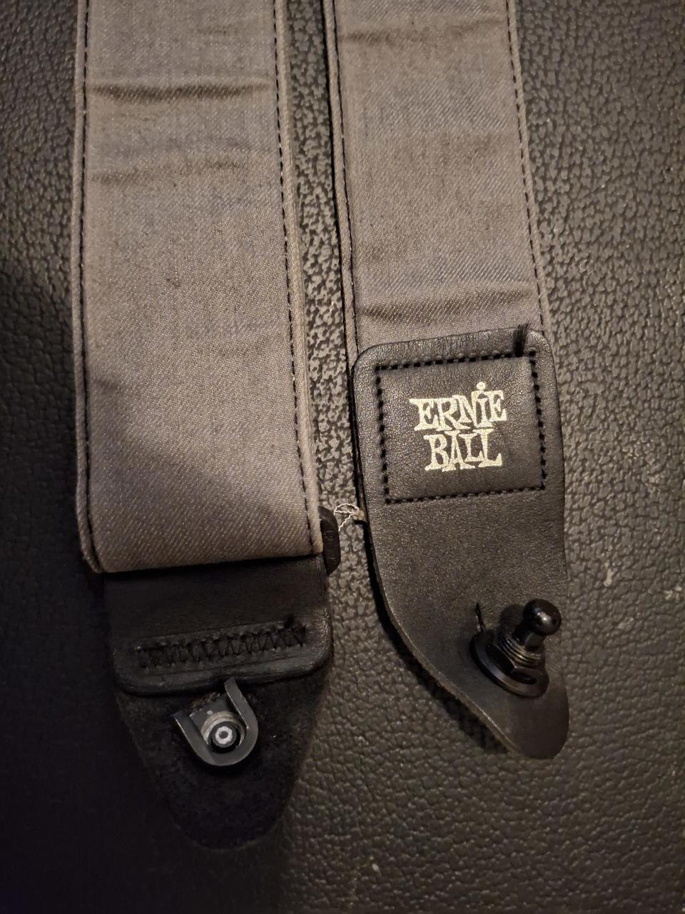 Kytara má něco odjeto, je vyhraná, seřízená. Mám ji z druhé ruky, je přepájená a jde z ní zvuk jak víno, ideální vyzkoušet si. K ní kufr, je to low cost, lehce se odlepuje, zámky jsou taky volnější, ale funkčně v cajku. Popruh Ernie ball, textilní, délka až 178 cm a je osazen zámky jako kytara.