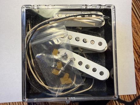 Prodám sadu snímačů Stratocaster Custom Shop 69. Snímače nebyly nikdy instalovány, dráty nejsou nijak kráceny ani pájeny. Koupeno 11.8.2025. V záruce, faktura je součástí nabídky. Aktuální cena na Kytary.cz 6590,- Kč.
