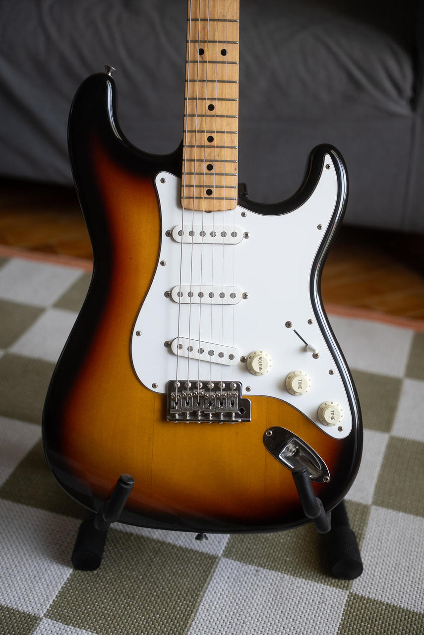 prodám svého Fendera Stratocastera, kterého jsem si osobně před časem dovezl z Japonska. Kytara má krásnou kresbu dřeva, speciálně krk je opravdu povedený. Ladící mechaniky jsou Gotoh, které tam jsou od výroby. Hraje naprosto parádně. Kytará má nějaké drobné oděrky na těle ale nic zásadního. Prodávám, jelikož jsem opět dokoupil jiné kytary a nějakou musím poslat dál. v příloze odkaz na youtube s testem kytary. K vyzkoušení v Mostě. Po domluvě se můžeme potkat v rozumné dojezdové vzdálenosti od Mostu.