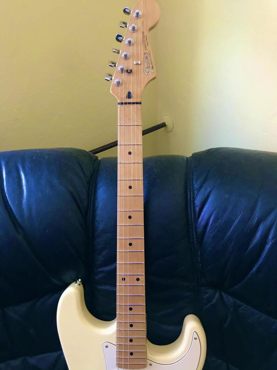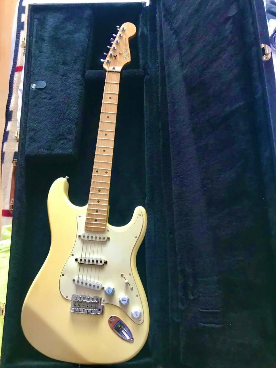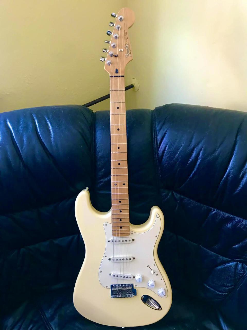 Predám tento orig. Fender Stratocaster Olympic White, r.v.2004, Orig.kufor, Fender pás, Serial nunber MZ4059957, Prvý majitel, Color Olympic White, Hmatník-Maple, 100% - Stav a výborný zvuk.