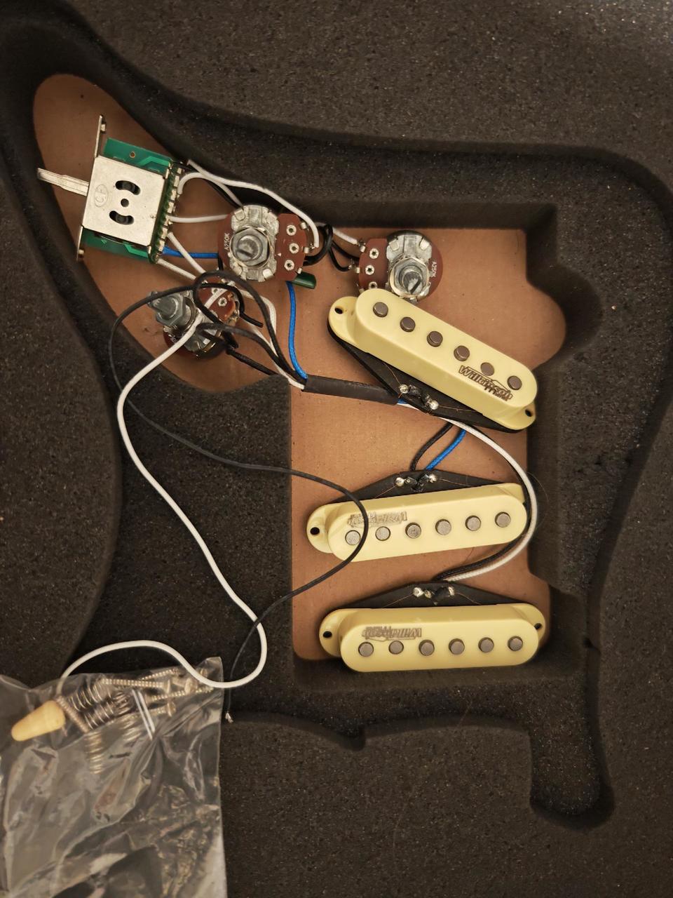 Prakticky nepoužité, demontováno z kytary viz foto, kterou jsem koupil s prasklým pickguardem a nahradil rovnou celym novym osazenym pickguardem fender) ta puvidni elektronuka wilkinson na mne ale pusobí líp, mĕnit se mi to zpĕt ale nechce. Nebo mám? Poradite?