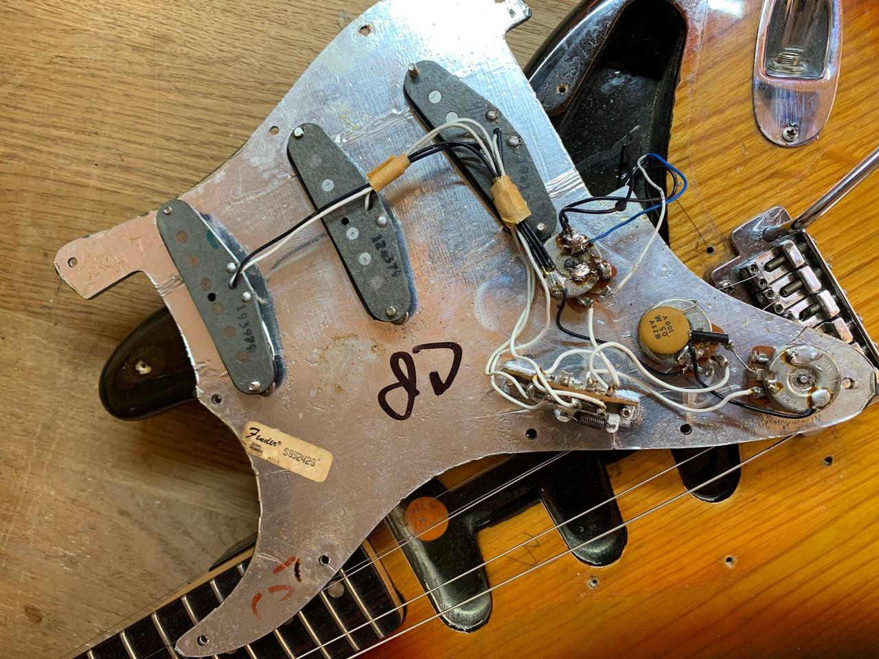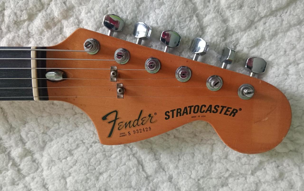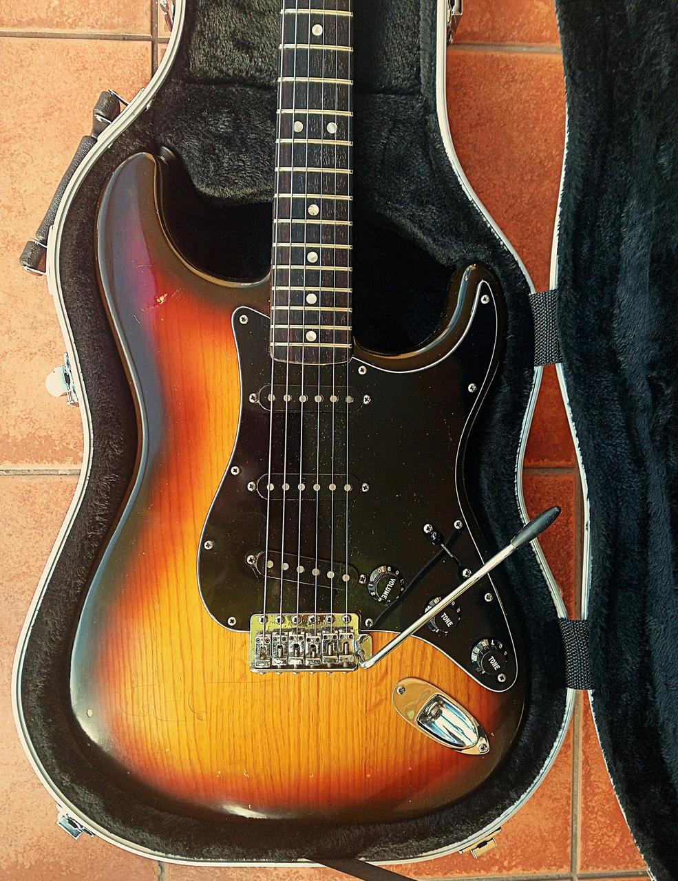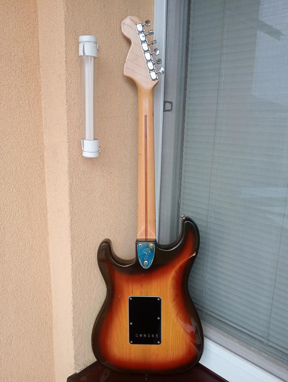Predám krásny orig. 47 ročný USA Fender Stratocaster,v prevedení sunburst spolu s kufrom, v 100% povodnom a plne funkčnom stave.Bola vyrobená vo fabrike: Fender Musical Instruments-Fullerton plant, Fullerton, California.Potenciometre aj snímače sú datované r.1979.Hodnoty snímačov vidíte na foto.Kobylkový snímač hodne vzácne tzv.hot X1, označený v ľavom hornom rohu ručne napísané 96.Jeho hodnota je 7,5 ohm, telo americký bahenný jaseň, krk javor, hmatník vzácny dark rosewood-tmavý palisander veľmi málo videný a ťažko zohnateľný, takmer ako eben.Krk rádius 7,25 profil C. Nultý pražec š.41 mm, hĺbka 22 mm. 5 pražec: š.45,5 mm, hĺbka 22,2 mm. 9 pražec š.49,2 mm, hĺbka 22,5 mm. 12.pražec: 51,2 mm, hĺbka 23,5 mm. Merané bolo bez strún, teda presne!!Veľmi vydarený kus.Pražce zachovalé. Gitara, ktorá neskutočne hrá.Je nastavená, rovný krk, nízky dohmat, oktávy vyladené Nové hybridné struny 0,8-0,46.Stačí zapojiť kábel a hrať.Gitara má váhu 4,6 kg, no odvďačí sa Vám krásnym zvukom.Jeden z najlepších kusov, aký som mal. Bolo ich asi 20 ks hodne aj modely Dan Smith 1982, taktiež jedny z najlepších Stratocastrov.Viac foto na požiadanie mailom. Najlepšie osobný odber s vyskúšaním, prípadne profi zabalím a s poistkou pošlem na dobierku.Žiadne výmeny prosím. Marshall nie je na predaj! Viacej foto pošlem na požiadanie.Cena: 2700 eur s kufrom.