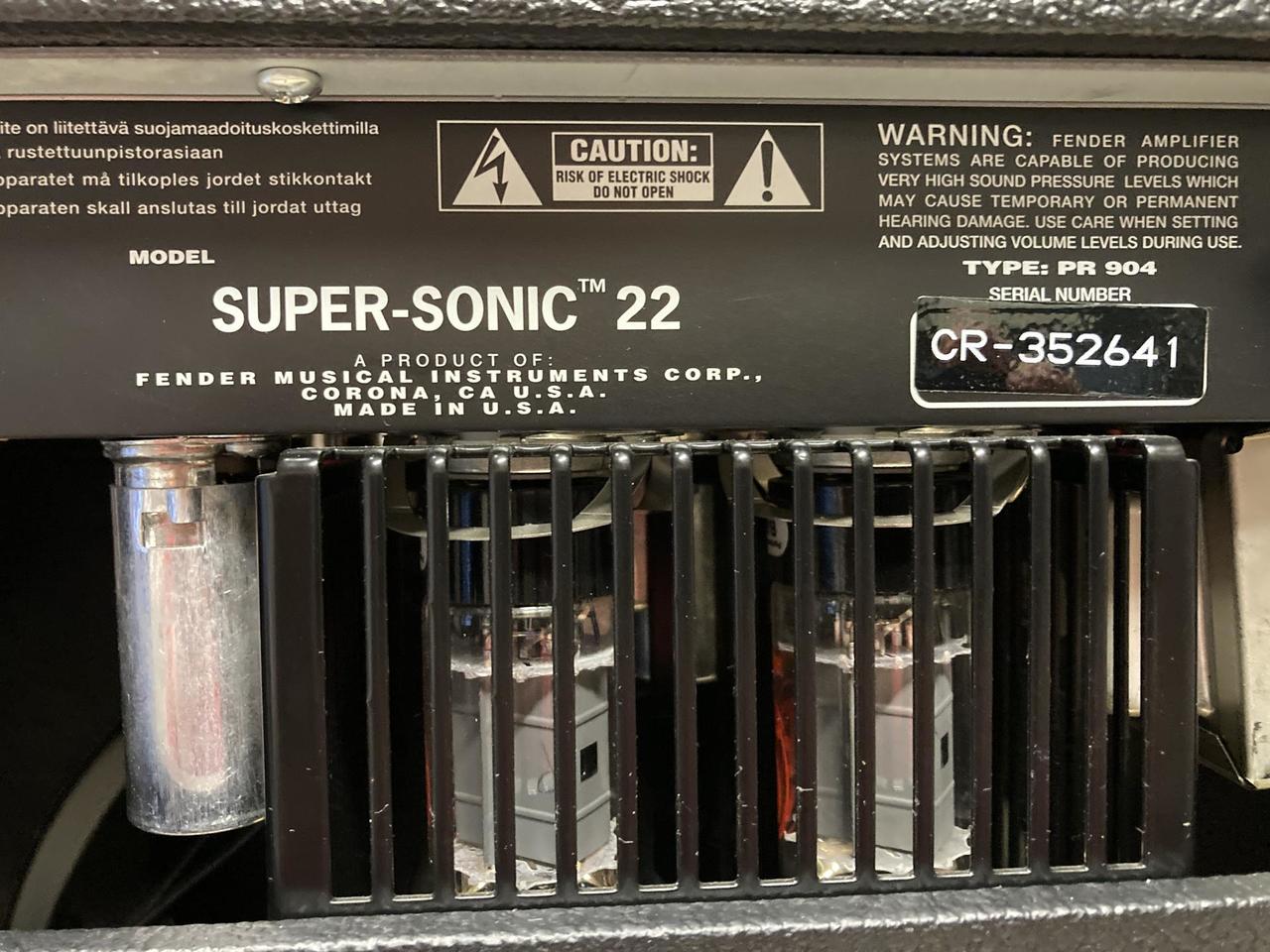 Fender Super Sonic 22 je dvoukanálové celolampové kombo pro elektrickou kytaru osazené 12" Eminence Lightning Bolt reproduktorem s výkonem 22W.