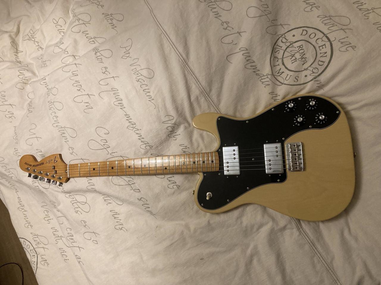 Predám elektrickú gitaru Fender Telecaster Deluxe (Mexico) – klasický 70s štýl s humbuckermi. Gitara je vo veľmi dobrom stave, plne funkčná, bez technických problemov.