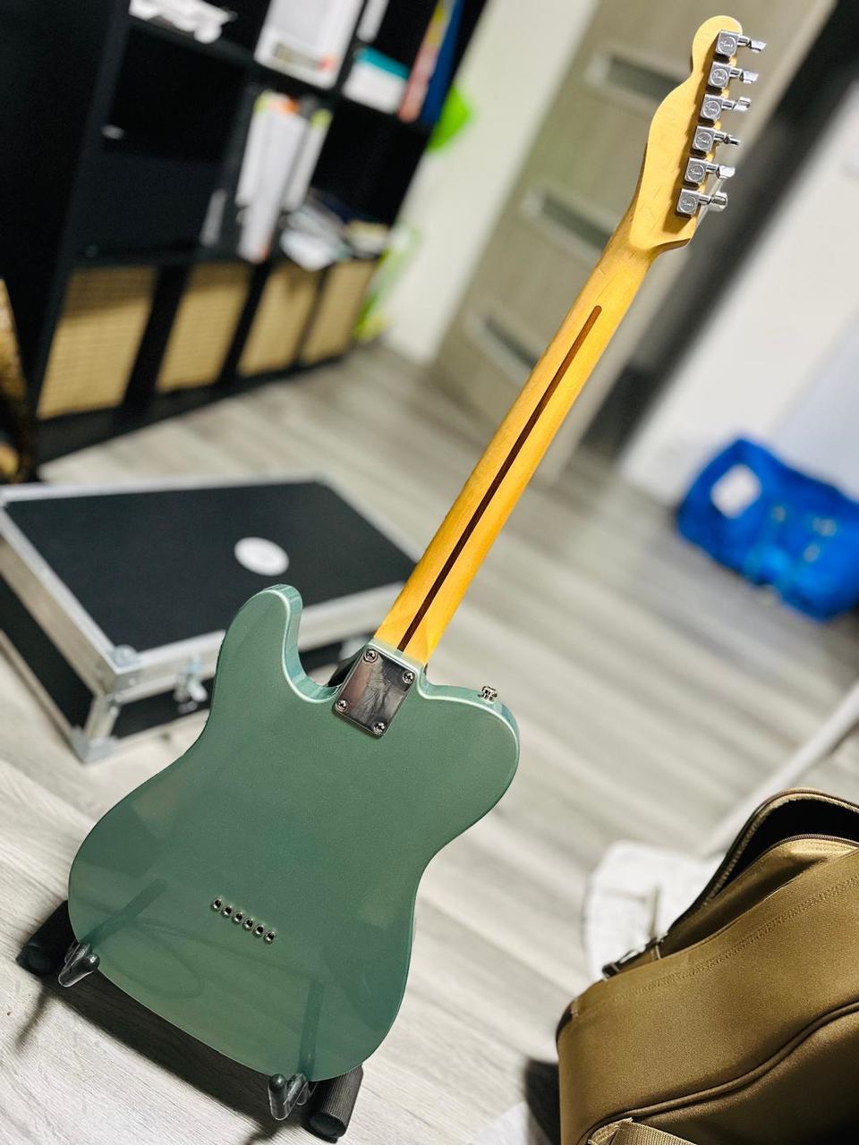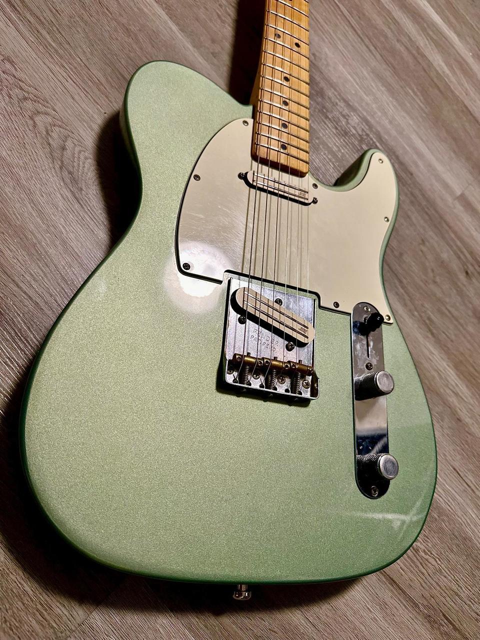 15000,- Při rychlém jednání. Dobrý den prodám výše zmíněnou kytaru Fender Telecaster Standard vyrobenou v Mexiku v roce 2004, barva Sage Green Metallic. Původní kobylka vyměněná za klasickou třísedlovou Fender kobylku, Graph Tech string saver, snímače JBE (Joe Barden Pickups). Pražce už budou chtít přebrousit/vyměnit. Původní snímače i šestisedlovou kobylku dodám též. Možnost přivézt a vyzkoušet v Brně.