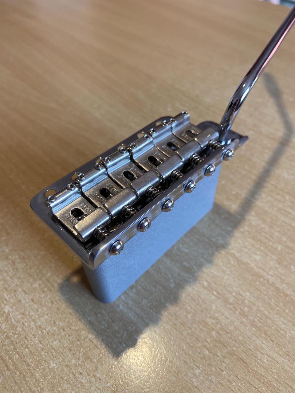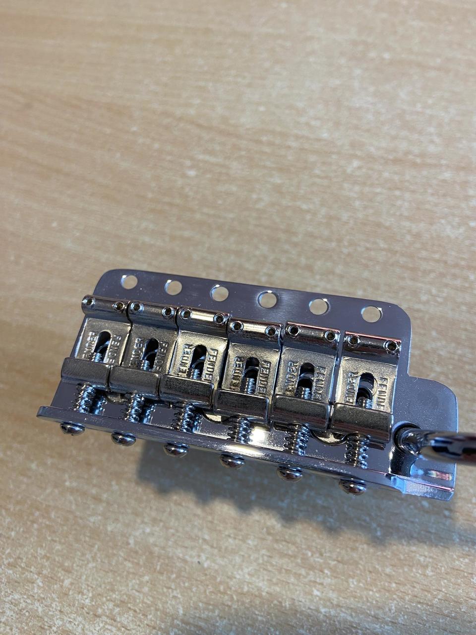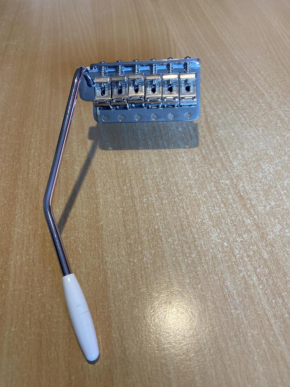 Pro Strat ročník 57/62 Velikost vintage instalace 2-3/16" Chromovaný Ocelový blok Kompletní systém s tremolovou pákou, pružinami, pákou tremola, struníkem, klíči a šrouby