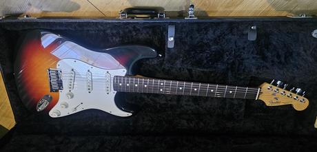 Predám Fender USA Standard Stratocaster vo farbe 3- Color Sunburst. Made in USA 1991. Telo jelša, krk javor profi krku C. rosewood hmatník s rádiusom 9.5. 22 Medium Jumbo pražcov, snímače 3x Fender American Standard USA single coils, TBX Tone Control.Orig. Fender kufor v cene.Gitara aj kufor v PERFEKTNOM stave!