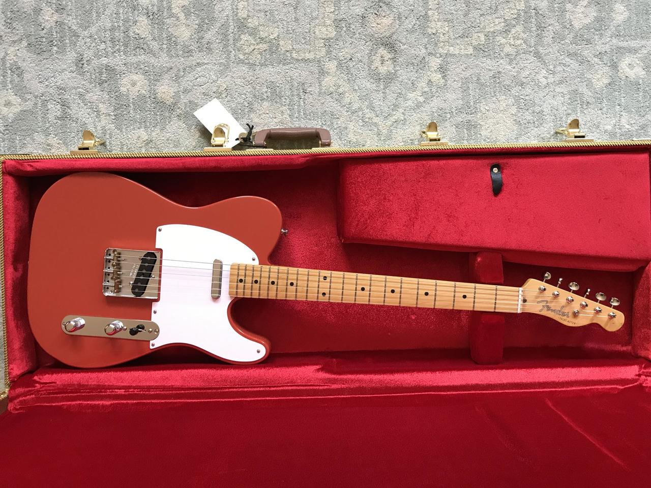 Barva -- Fiesta Red. Profil krku je "Early 50s U" (o něco tlustší něž to cečko). Díky tomu je velmi stabilní a mimořádně pohodlný pro hraní barré akordů. Na rozdíl od většiny moderních Fenderů, které mají na zadní straně krku tenký saténový povrch, má tento Telecaster skutečný vysoce lesklý lak. Kytara je nová, nehraná, jako z obchodu. Je to dobrý a bezvadný kus. Cena je 18000 Kč. s originálním obalem Fender nebo 19000 Kč. s tvídovým kufrem značky Thomann jako na fotkách. Specifikace od vyrobce: Fender Vintera 50s Telecaster MN FR, Telecaster Electric Guitar; body: alder; neck: maple; fingerboard: maple; neck mount: bolt on; neck shape: early 50s U; inlays: black dots; 21 vintage frets; nut: synthetic bone; nut width: 42 mm (1,65"); scale: 648 mm (25,51"); fingerboard radius: 184 mm (7,25"); pickguard: 1-ply white; pickups: vintage-style 50s single-coil tele (bridge), vintage-style 50s single-coil tele (neck); controls: master volume, master tone; switch: 3-way; bridge: 3-saddle american vintage string-through-body tele with chrome barrel saddles; hardware finish: nickel/chrome; tuners: vintage-style; incl. deluxe gigbag; colour: fiesta red; stock strings: Fender USA 250L NPS .009 - .042 (Art. 133191). Osobní odběr v Karlových Varech. Občas jezdím Vary--Praha Neposílám, neměním. Vzhledem k případům podvodů jsou upřednostňováni jen seriózní zájemce s alespoň minimální pozitivní pověstí zde na Hudebmím bazaru. Děkuji za pochopení. Vezměte prosím v úvahu, že s tímto nákupem nelze nabídnout žádnou záruku ani právo na vrácení. Rád však zodpovím případné dotazy, poskytnu další obrázky a dám kupujícímu možnost kytaru důkladně zkontrolovat.