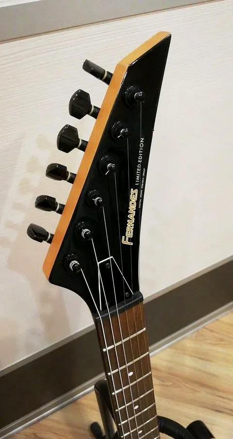 Kytara je na svůj věk ve velmi pěkném stavu, jen pár drobných ťukanců a lehké povrchové škrábance. Krk je rovný, výztuha funguje a původní pražce mají jen lehké opotřebení bez důlků. Made in Japan potvrzují i původní japonské potenciometry. Kytaru je možné vyzkoušet v Praze na adrese Novodvorská 106 přes kombo Yamaha THR10X. ---- Original MIJ Fernandes TEJ-45 in black finish with cream binding. Bolt-on maple neck with rosewood fingerboard, 25.5" scale, 22 frets, string-through-body hardtail bridge, black hardware, and original Fernandes pickups. A classic TEJ model with the fast attack, tight low end, and clear aggressive sound this series is known for. The guitar is in very good condition for its age, with only a few small dings and light surface scratches. Neck is straight, truss rod works, and the original frets have light wear with no dents. Made in Japan, confirmed by the original Japanese potentiometers. The guitar can be tested in Prague, Novodvorská 106, through a Yamaha THR10X amp.