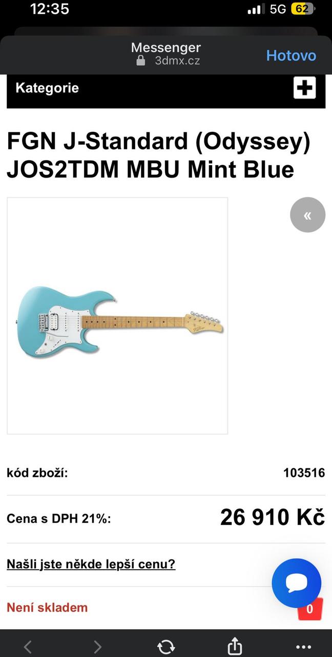 Elektrická kytara typu Superstrat, vyrobená v japonské továrně Fujigen. Tělo nástroje je vyrobené z olše. Javorový krk s profilem U-Shape a hmatníkem z javoru je osazený 22 medium pražci, technologií C.F.S. Více o C.F.S. na www.fgnguitars.cz. Menzura nástroje 25,5“ (648 mm). Snímače továtní značky FGN OS-2n (krk), OS-2rw (střed) a humbucker FJTR-Hf (kobylka). Ovládání 1x potenciometr hlasitosti, 1x tónová clona, pěti polohový přepínač snímačů a mini přepínač pro rozepnutí cívek humbucker snímačů. Hardware nástroje: ladící mechaniky Gotoh SD91-05M a tremolo kobylka FJTR-S2P. Hraje opravdu výborně.