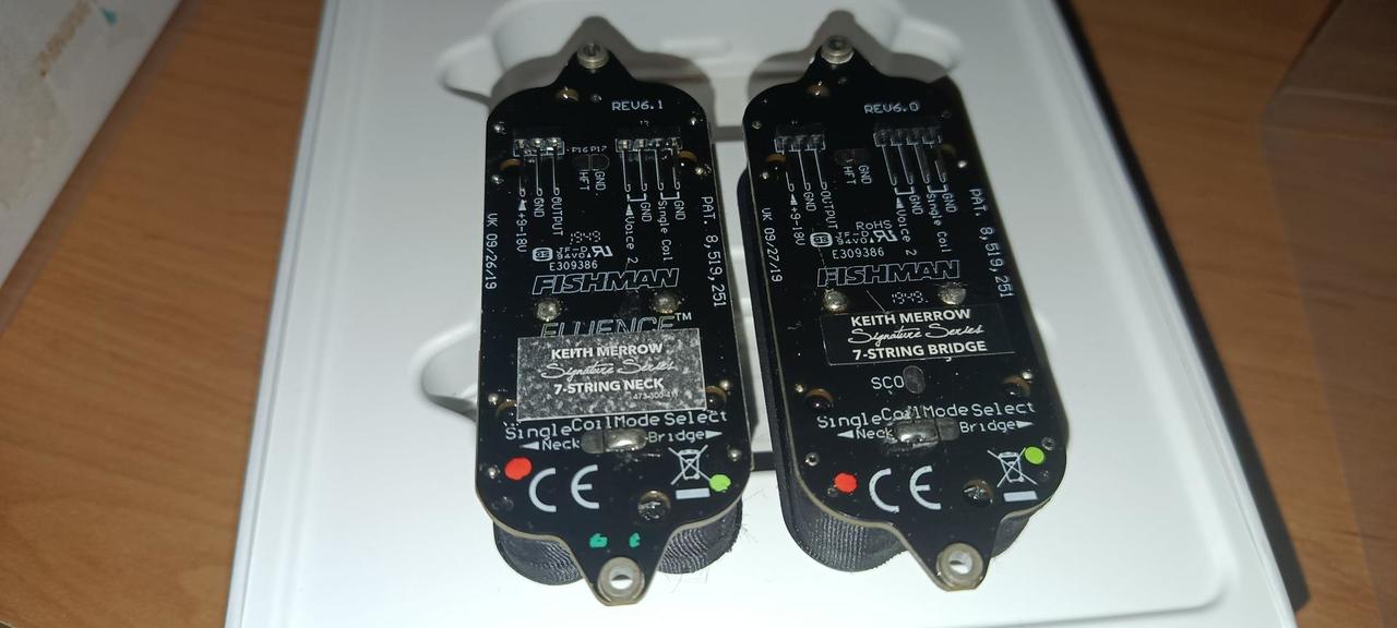 Na 7 strunnú gitaru! Bridge - Keith Merrow Neck - Open core Je to sucast setu -3 voicingy na kazdom -2x push pull -2x klasicke pot. Vsetky kabliky a obsah. Klasický rozmer snímačov, netreba žiadne úpravy. Nič nieje pocínované! Poštovné v cene. Najlepšie cez zásielkovňu/packetu Je malá šanca že odpíšem na mail!! Pošli SMS !!!!