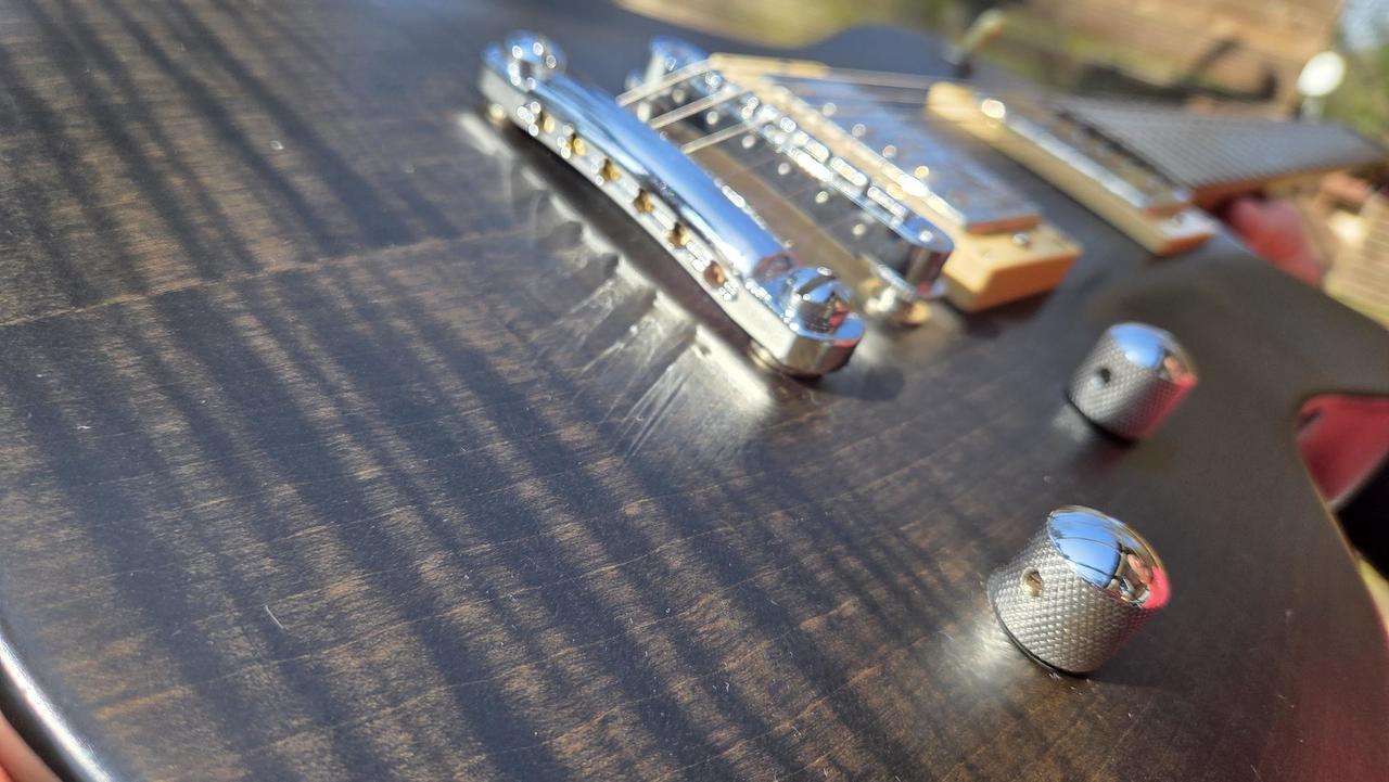 prodam framus panthera 2003 made in germany, moderni les paul, vyberove drevo telo mahagon / AAA javor, krk ovangol / palisandr, snimace seymour duncan SH2 / SH4, rozepinani pres push pull, hardver gotoh, puvodni stav, menzura 251/2, kvalitou spracovani, drevem a hardverem neco jako usa prs, serizena na 9-42 elixir, puvodni prazce ve vybornem stavu, nic ji neschazi, osobne Brno, Bratislava 19.900kc