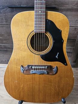 Klasický příklad německého kytarářského umění 60. let od značky Framus – jednoho z nejinovativnějších evropských výrobců poválečné éry. John Lennon hrál na 12 strunnou verzi kytary téhle konstrukce. Specifikace Menzura: 648 mm (25.5") Šířka nultého pražce: 43 mm Hloubka korpusu: 105 mm Spoj krku: u 14. pražce Sériové číslo: 35275 Šroubovaný krk, rosewoodová kobylka s kovovou destičkou, původní pickguard Krk má mimořádně rovné, jemné letokruhy – typické pro lepší kusy z této doby. Zvuk a hratelnost Jasný a artikulovaný vintage zvuk – pevné basy, čitelné středy, konkrétní výšky. Oproti americkým dreadnoughtům má méně dunivý, zato přesnější a vyrovnanější tón. Výborné oddělení tónů a přirozená komprese, ideální pro folk, blues i fingerpicking. Pražce jsou ve skvělém stavu, hratelnost velmi příjemná vzhledem k věku nástroje. Stav Opravená místa na lubech (viz foto); esteticky ne úplně profi, ale pevné a stabilní. Mechaniky drží ladění, nástroj je stabilní. Běžné vintage opotřebení, celkově ale velmi zachovalý stav. Kytary Framus z této éry hráli např.: John Lennon – Framus Hootenanny 12 na Help! Elvis Presley – vlastnil a používal několik akustik Framus David Bowie – v 60. letech byl viděn s akustickou Framus Framus tehdy proslul německou přesností, originální konstrukcí se šroubovaným krkem a jasným tónem, který ho odlišoval od amerických značek jako Martin nebo Gibson.