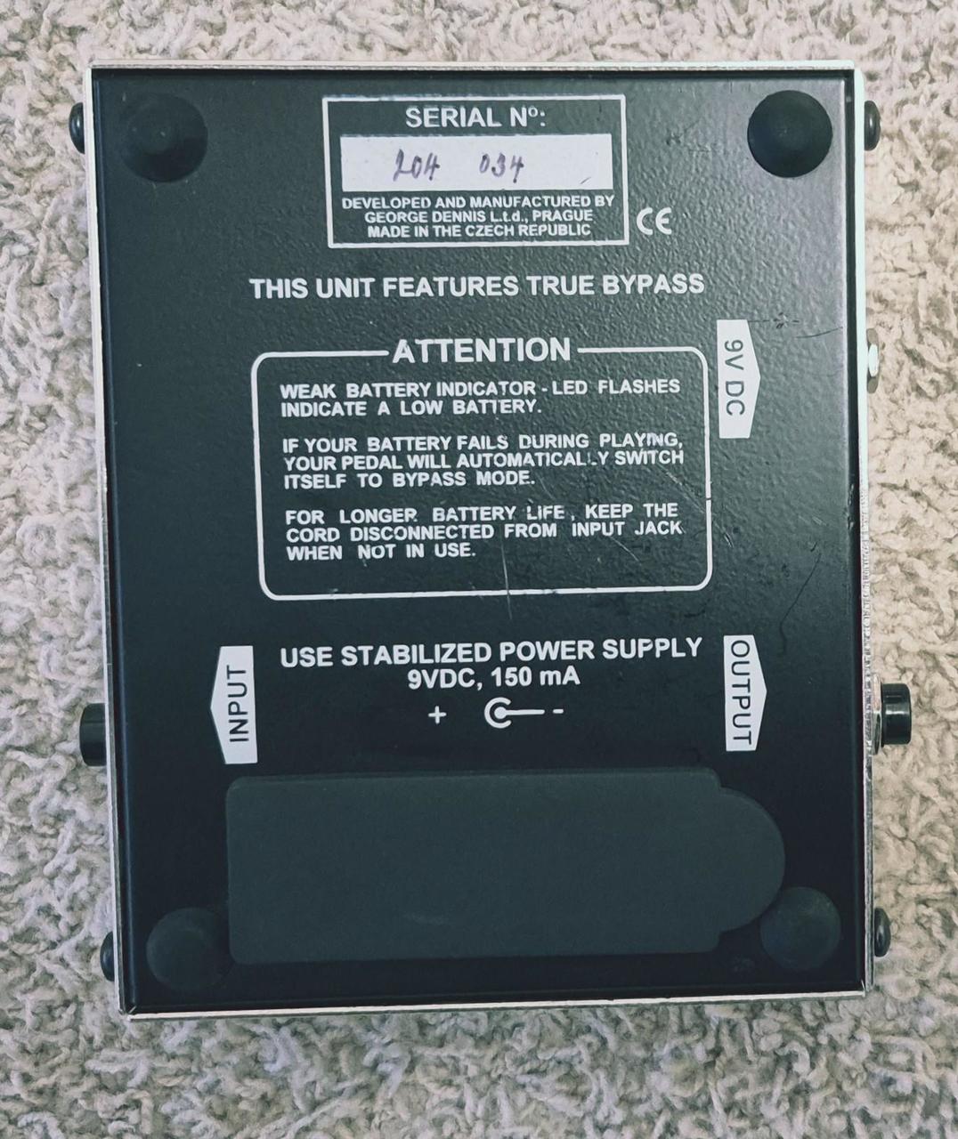 Tento efekt je navržen tak, aby emuloval zvuk klasických lampových aparátů značky Marshall (jako jsou JTM45 nebo Plexi) a nabízí širokou škálu zkreslení od jemného bluesového „crunch“ až po tvrdší rockový zvuk. Citlivá reakce na dynamiku. Nadstandard v podobě technologie FTB (Failure Free True Bypass). Signál z kytary procházející vypnutým efektem není nijak barevně ani dynamicky ovlivněn a v případě problému s napájením nebo vybití 9V baterie se pedál automaticky přepne do režimu True Bypass, namísto aby zhasnul, nebo přestal fungovat. Blikající LED diodoa upozorní na blížící se vybití baterie. Robustní konstrukce z nerezového plechu o tloušťce 1,5 mm. • Ovládání: Gain, Bass, Middle, Treble, Level • True-bypass Osobní předání, nebo zaslání přes Zásilkovnu, Balíkovnu, nebo PPL. https://www.casopismuzikus.cz/testy/george-dennis-king-bee-gd-230