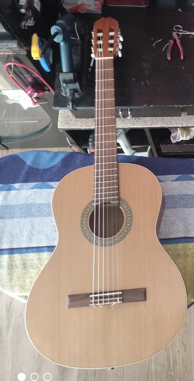 4/4 model, šíře sedla 52 mm Masivní cedrová deska Spodní deska a obruba-Palisandr Krk - mahagon, hmatník a kobylka - palisandr Španělský krk... Dřevěný lem.. Dřevěná mozaika kolem rezonančního otvoru Sedlo a vložka pro kobylku-kost Mechanika s lyrou - zlatolak, akrylové knoflíky..... Je to kytara která se vyráběla sériově tady kousek v GEWA, v letech 2012-2016... Vyráběla se sériově podle této kytary, která byla vyrobena jako mustr ručně..Prodejní cena nové sériovky byla okolo 6000 Kč... Tento kousek se dá vyčíslit jen těžko ale nechám jí za 2900 Kč a k ní dám jedny nové struny - modré Savarez .. Neopustila domácí studio, mám jí 13 let... Před 4 lety nové mechaniky z GEWA... Preferuji osobní odběr... Posílám jen v obalu, který bývá u kytar z eshopů. Ten ale nemám, umím ho asi i sehnat ale je třeba počítat s vyššími náklady..