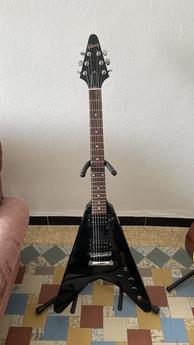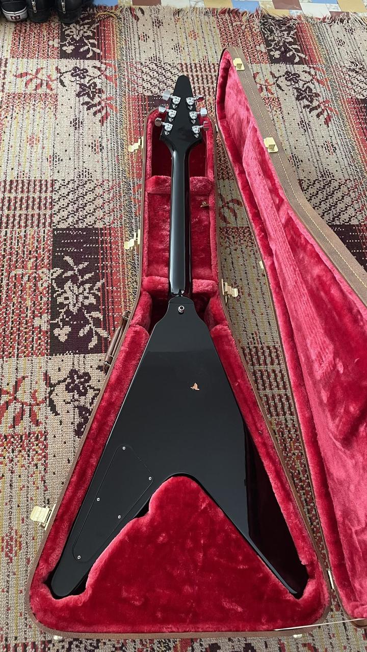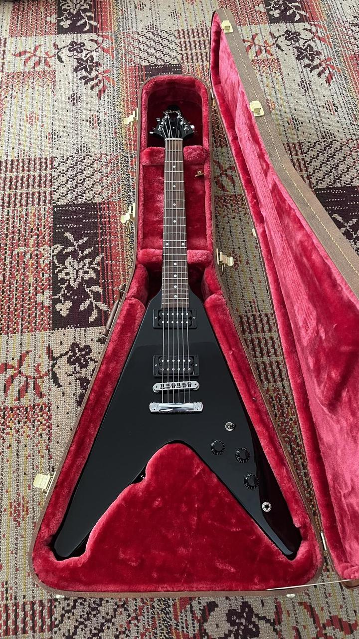 Prodám Gibson 80s Flying V Ebony. Metalová kytara, kupovaná v létě 2025. Byla doteď moji hlavní kytarou, proto už toho má dost za sebou. Na kytaru se hrálo denně. Najdou se odřeniny z pásku i pár šrámů.