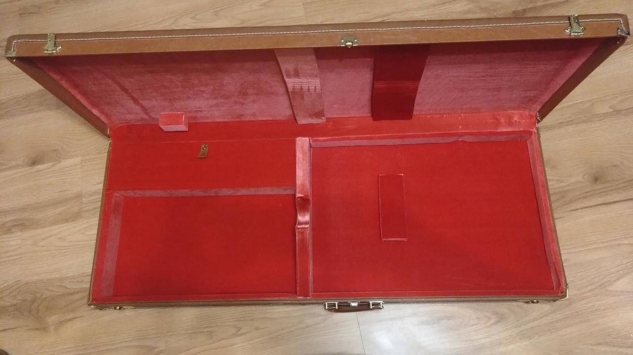 Velmi dobrý stav, viz foto. Funkční, kromě přihrádky na příslušenství, která částečně nedrží na svém místě, viz foto. Zámky plně funkční, včetně 2 klíčů. Made in Costa Rica 2021. Cenu nabídněte. Děkuji. Preferuji osobní odběr v Praze, příp. Střední Čechy nebo dle domluvy. Originální informace: https://www.gibson.com/en-eu/products/gibson-historic-58-korina-explorer-hardshell-case The Historic '58 Korina Explorer™ Hardshell Case is a historically faithful recreation of the case supplied with Korina Explorers produced in 1958. Reverse-engineered from original vintage cases, this wood frame case is covered in Historic Brown Tolex and has an interior foam nest lined with pink plush. It has one vintage flip-up style latch and two latches with latch release buttons for a total of three latches. The interior accessory compartment features a brown leather pull tab. Historic Brown Tolex exterior Pink plush interior lining 3 Historic-style latches Brown vintage-style C-shaped handle Vertical accessory compartment with leather pull tab Internal dimensions: 46” length, 15.75” upper body width, 15.75” lower body width, 2” depth