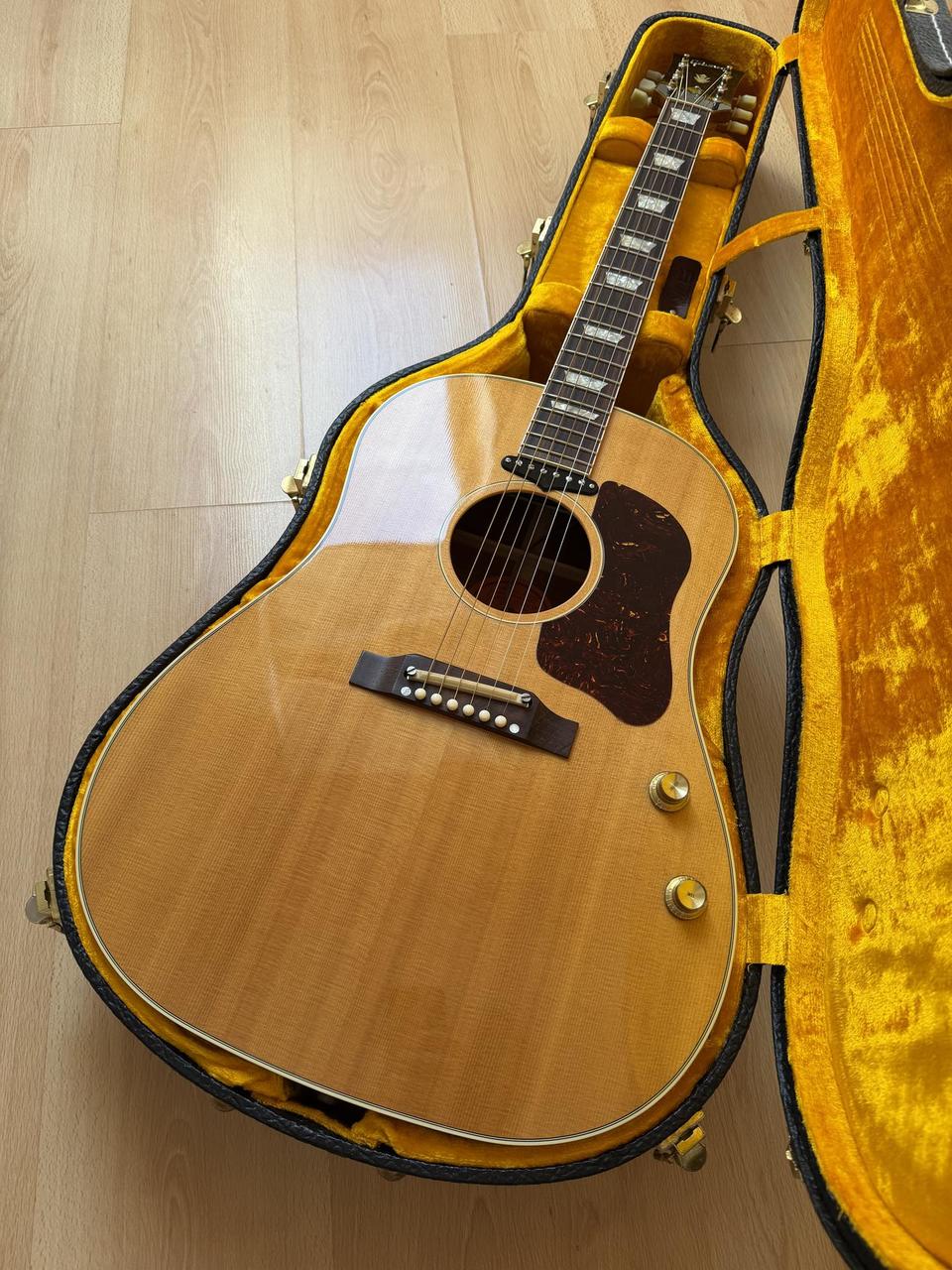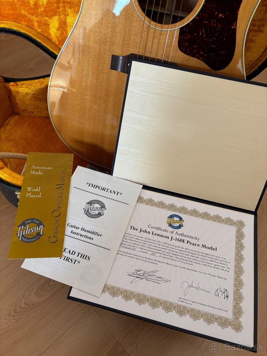 Predávam Gibson j160 e, natural, model john Lennon, gitara je v stave nového kusu, ku gitare je pevný kufor,certifikát, skutočne fantastická gitara nielen pre fanúšikov Beatles, vyrobených len 750 kusov pre celý svet. Kúpená v Nemecku, doklady o kupé sú k dispozícii, len predaj,predaj možný v Brne, východne Čechy,Morava.