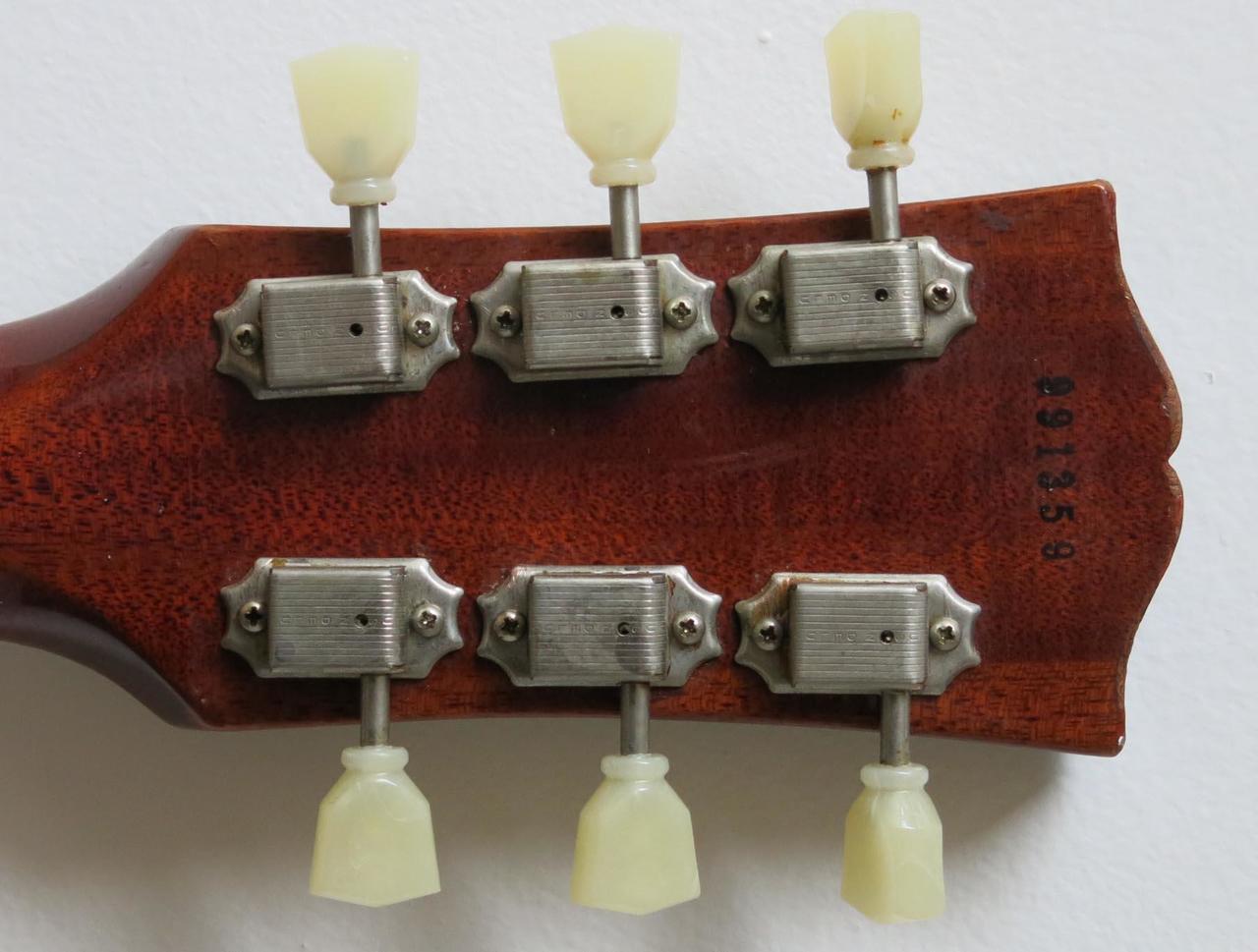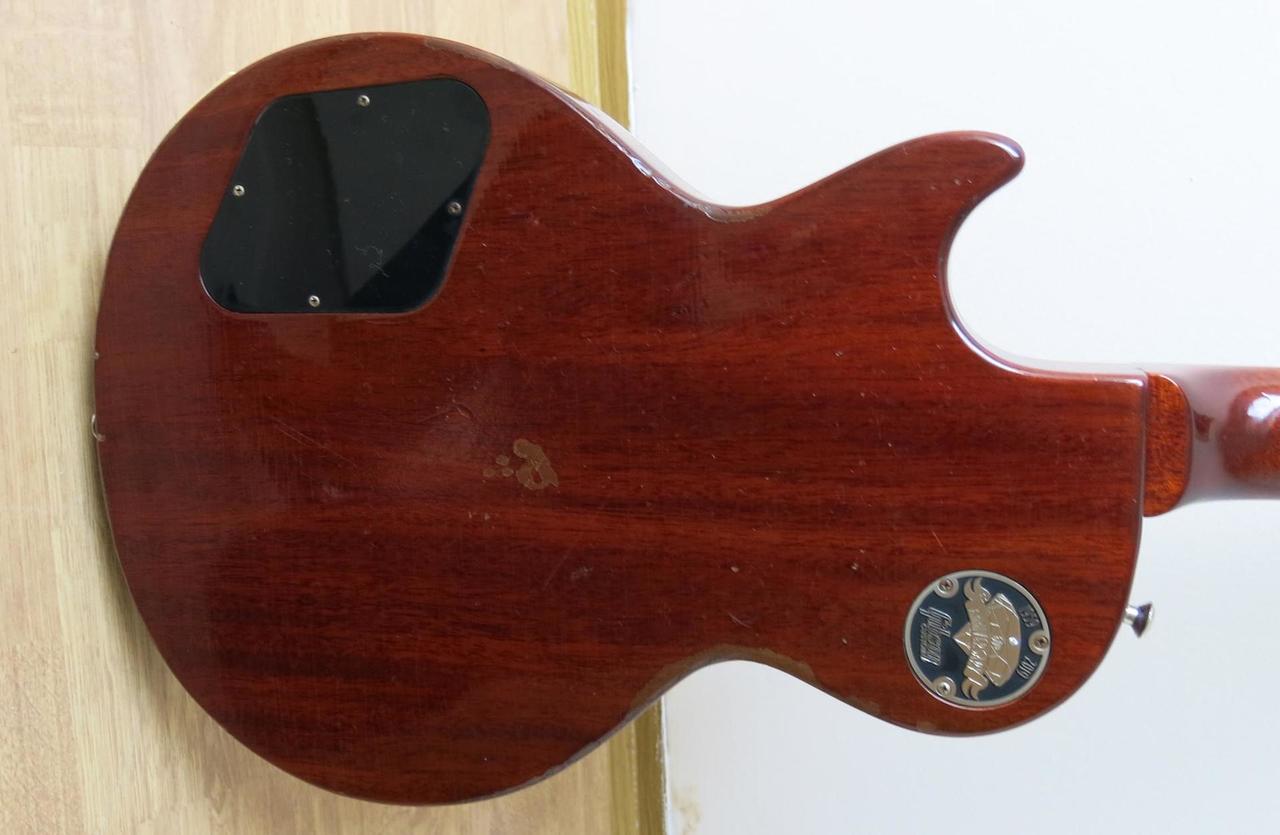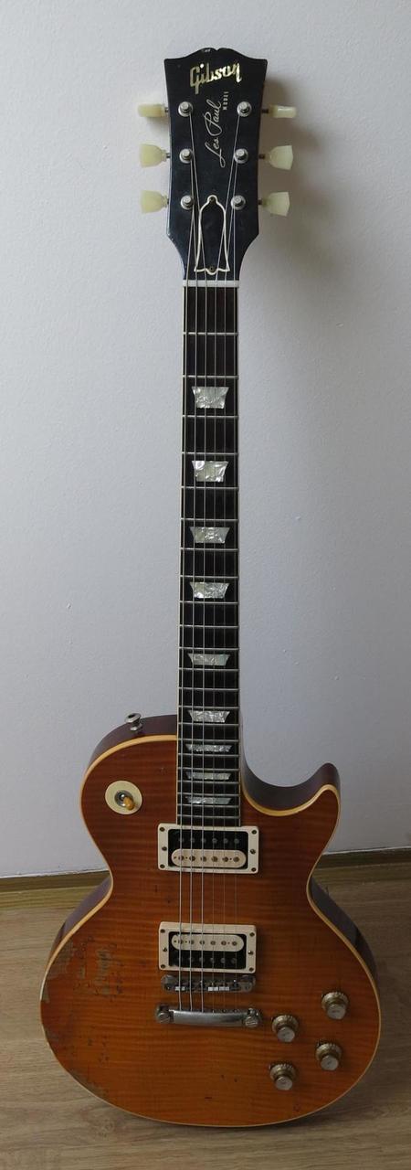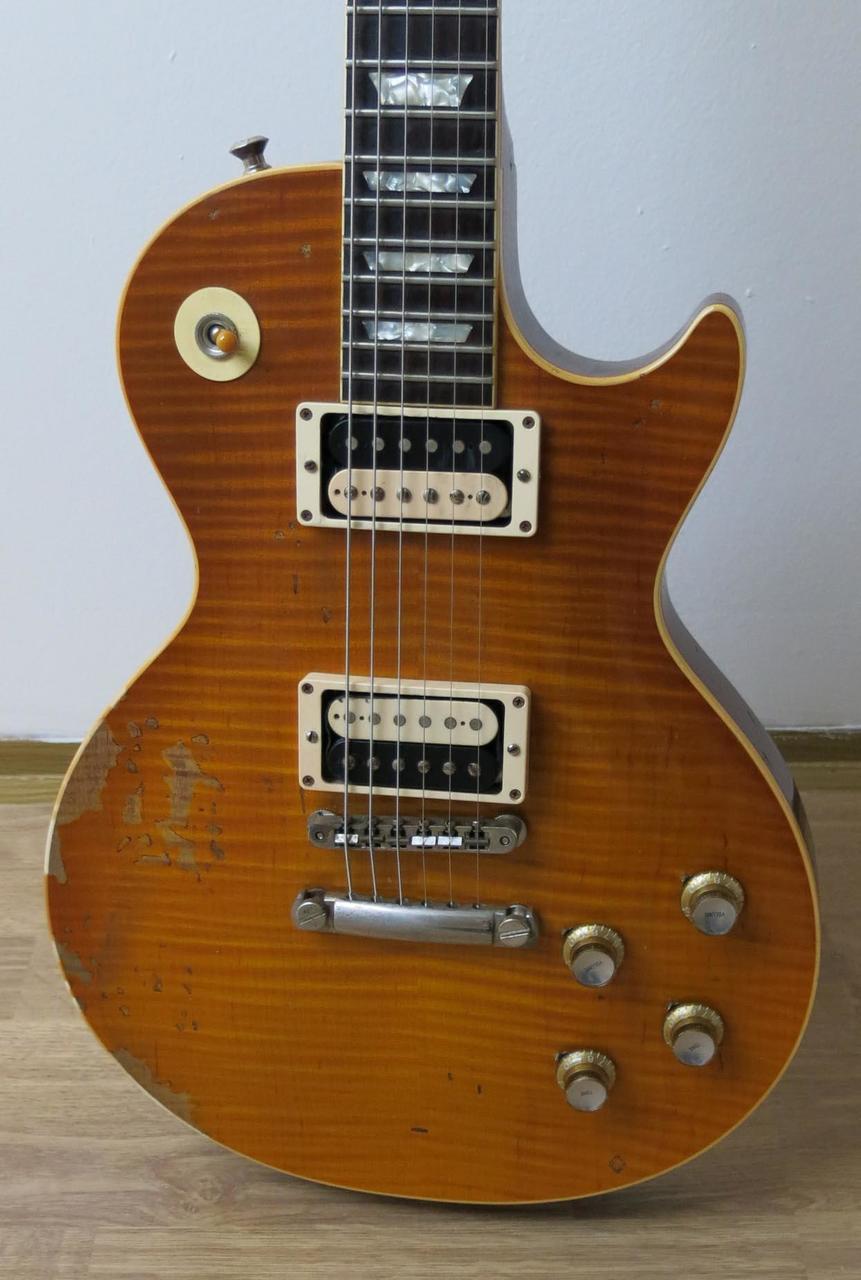 Součástí je pevný heavy aged kufr. famed maple top (hide glued), solid mahogany body (swietenia macrophylla), one piece mahogany neck (swietenia macrophylla), rosewood fretboard (dalbergia latifolia) (hide glued), authentic ´59 medium "C" neck shape, x historic medium jumbo frets, aged cellulose nitrate trapezoid inlays, x custombucker pickups, CTS 500k pots /w paper-in-oil capacitors, kluson single ring vintage tuner, no wire ABR-1 bridge, alumuinium stopbar, cellulose acetate butyrate plasitc parts, nickel hardware, 60th anniversary switchblade medallion (historically correct backplate in case), color: Mojave Fade, incl. lifton case and certificate, made in USA, weight: 4,12 kg