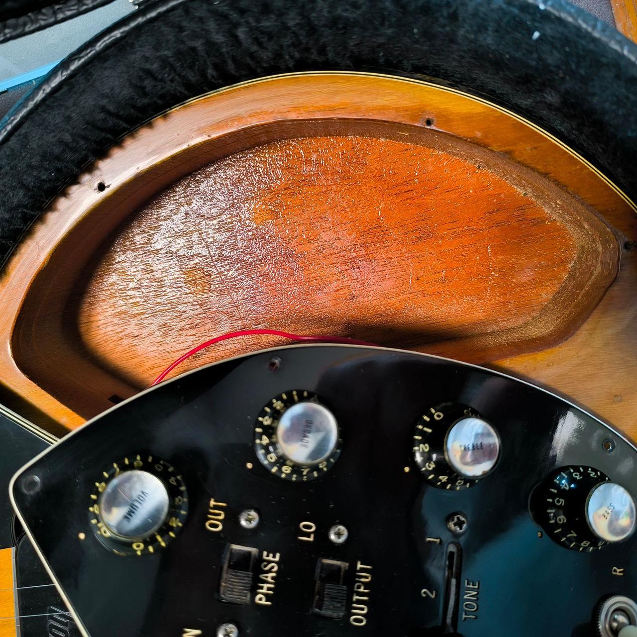zvažuji prodej této raritní kytary z roku 1973. Vše originál včetně potenciometrů, hardware a přepínačů. Skvělý stav - pražce téměř jako nové. Pocitově i zvukově jde o výjimečný kus, hraje neskutečně po celém hmatníku. Součástí prodeje je také neoriginální pevný futrál. Možná výměna za jiný zajímavý nástroj - což bych upřednostnil před prodejem.
