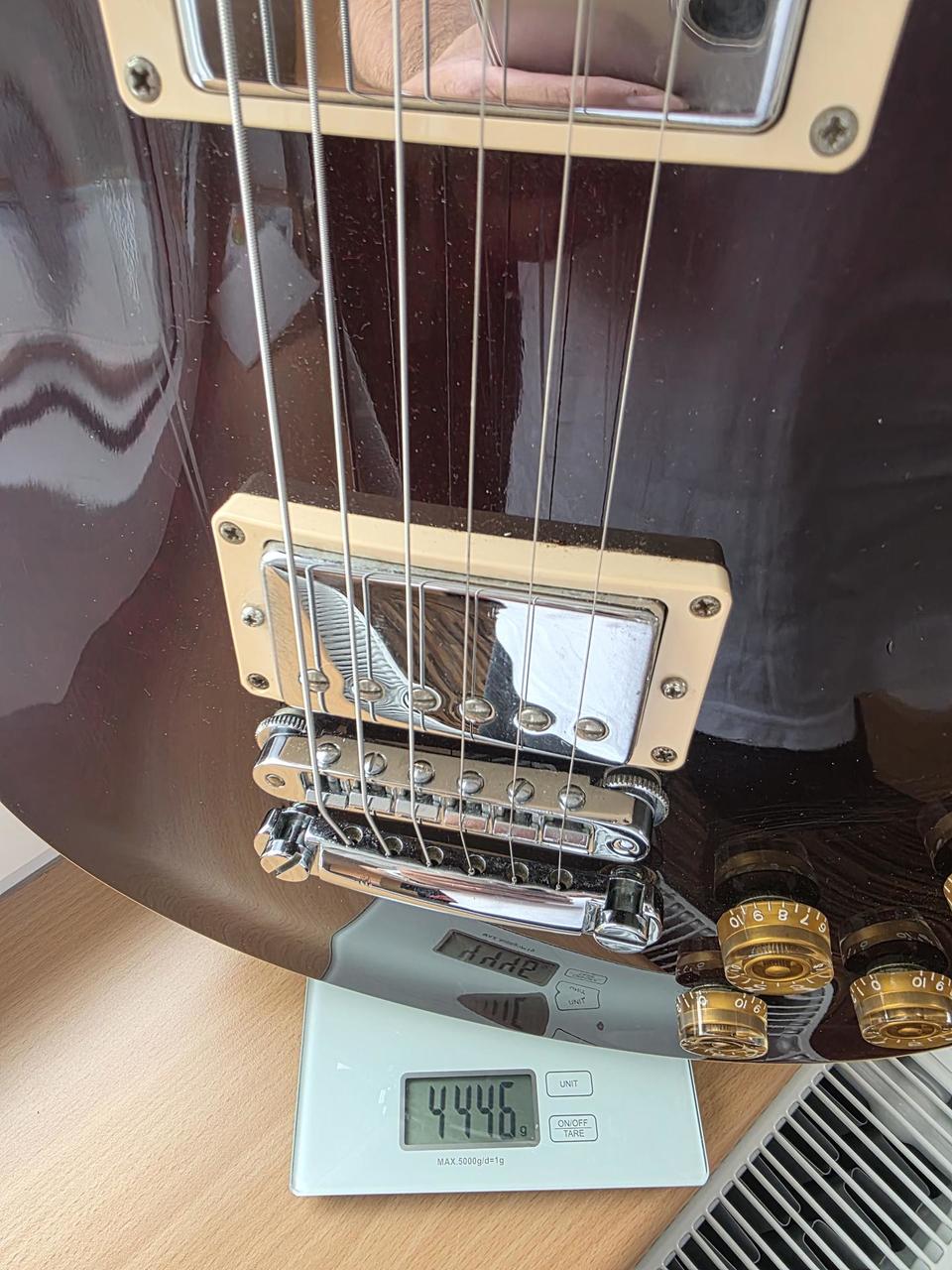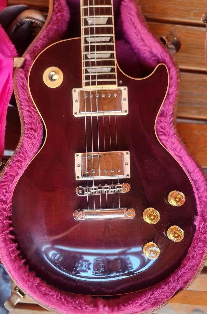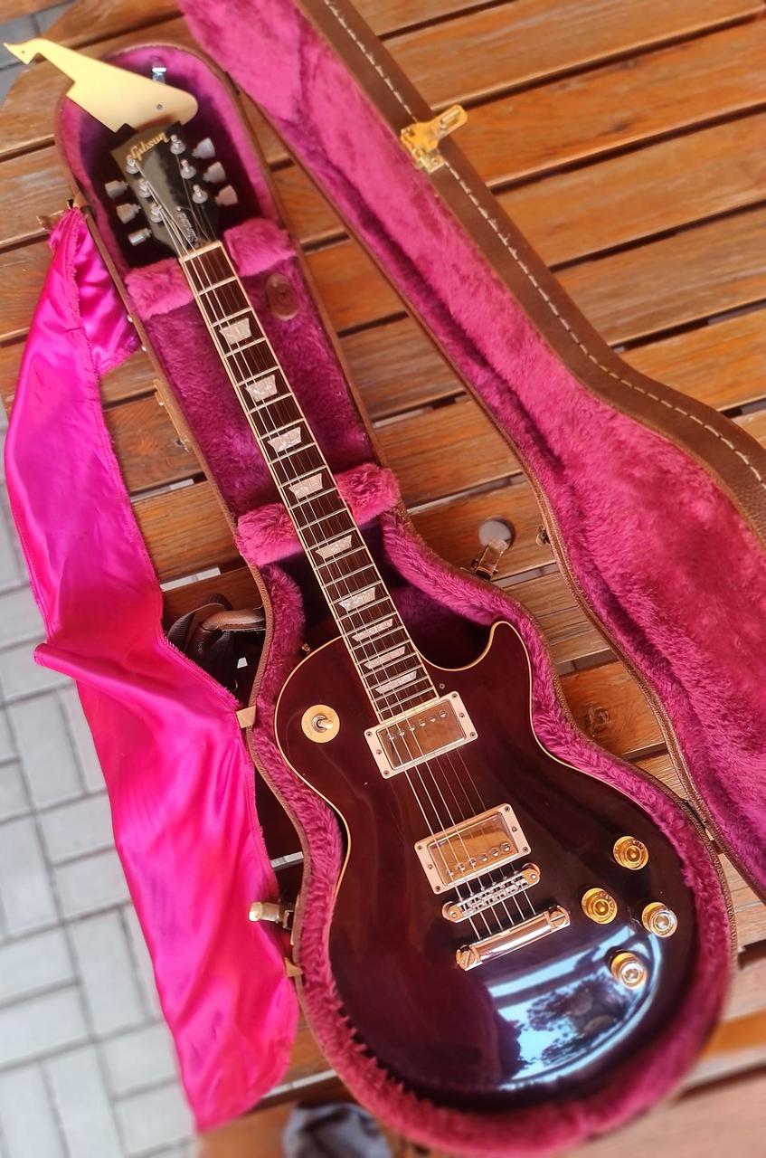 - výroba USA v roce 1997 - barva Wine Red - osazeno 498/496 - krk 50 - silnější - váha 4,448 g - originál dobový hnědý kufr - stav velmi dobrý