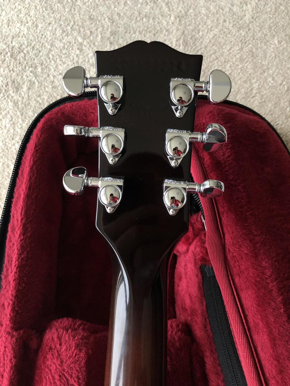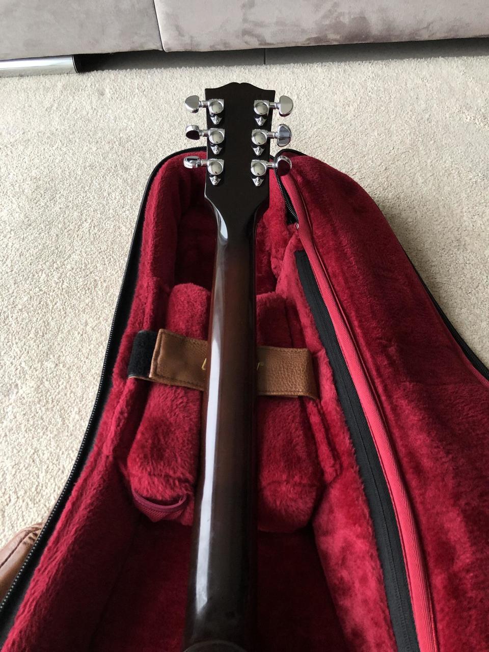 Dole na těle uštípnutý kousek laku - viz foto, plus lehce poškrábaná záda kytary.