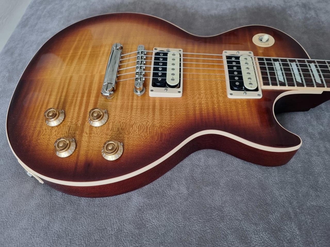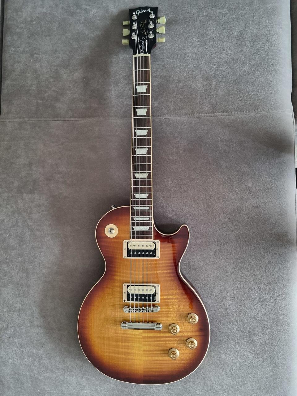Prodám kytaru Gibson Les Paul Traditional 2018, barva tobacco burst, snímače Seymour Duncan Slash Alnico II zebra, nultý pražec slonová kost (guitarambulance), kufr. Pevná cena. Ne výměnu. Pouze osobní předání.