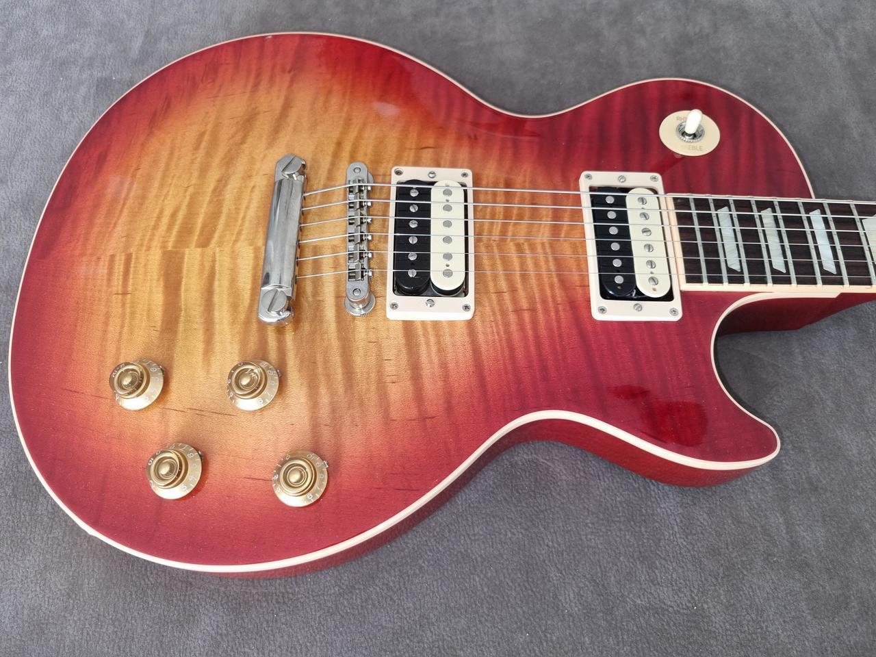 Prodám kytaru Gibson Les Paul Traditional 2018, heritage cherry burst, snímače Seymour Duncan Slash Alnico II zebra, nultý pražec slonová kost (guitarambulance), kufr. Pevná cena. Ne výměnu. Pouze osobní předání.