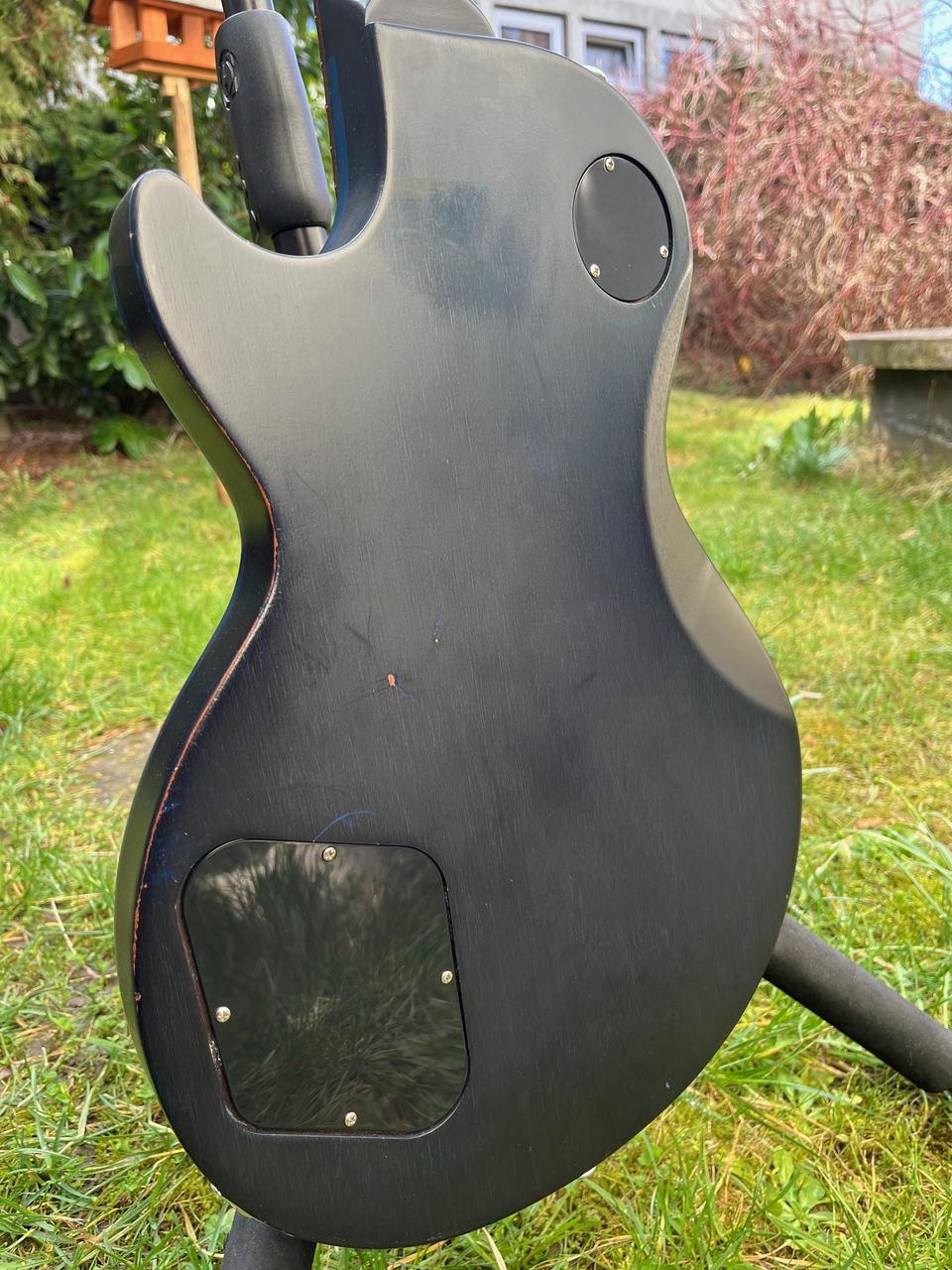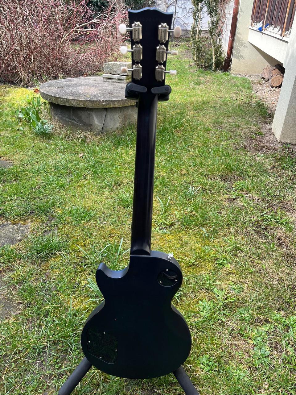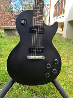 korpus: mahagon vrchní klenutá deska: javor Tělo je plošší než má Standard, "břišní" výřez. Na popruhu sedí hezky, žádné přepadávání za hlavicí. Rozumná váha cca 3,5 kg. Kytara má nádherný hmatník se zajímavou kresbou z tmavého palisandru. Pražce jsou super, krk boží, tak akorát do ruky (60's profile). Skvěle seřízená, střední/nižší dohmat. Struny 10-52 Elixir. Saténová nitrocelulózová povrchová úprava (tenká vrstva laku). Kytara hodně rezonuje. Na fotkách působí jako černá, naživo se jeví spíše jako tmavě modrá. Kytara má plný zvuk a je pevná v basech. Dva snímače typu P90. Určitě vhodná na spoustu žánrů, kde je potřeba tlustý, kulatý zvuk (rock, jazz, blues...). Kytara je bez modifikací - vše původní. Ke kytaře přidám úplně nový (nepůvodní) obal zn. Thomann. Inzerát platí do smazání. Cenu zkuste nabídnout.