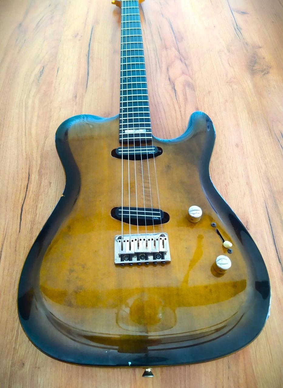 Telecaster na stereoidech Kytara váží 3,4 kg. Tělo je z lípy, krk je "obláčkový javor," hmatník je z ebenu. Jestli jsi do teď mlátil do kytary, na Artisana začneš teprve hrát. tenhle nástroj umí i mluvit. Original kufr.