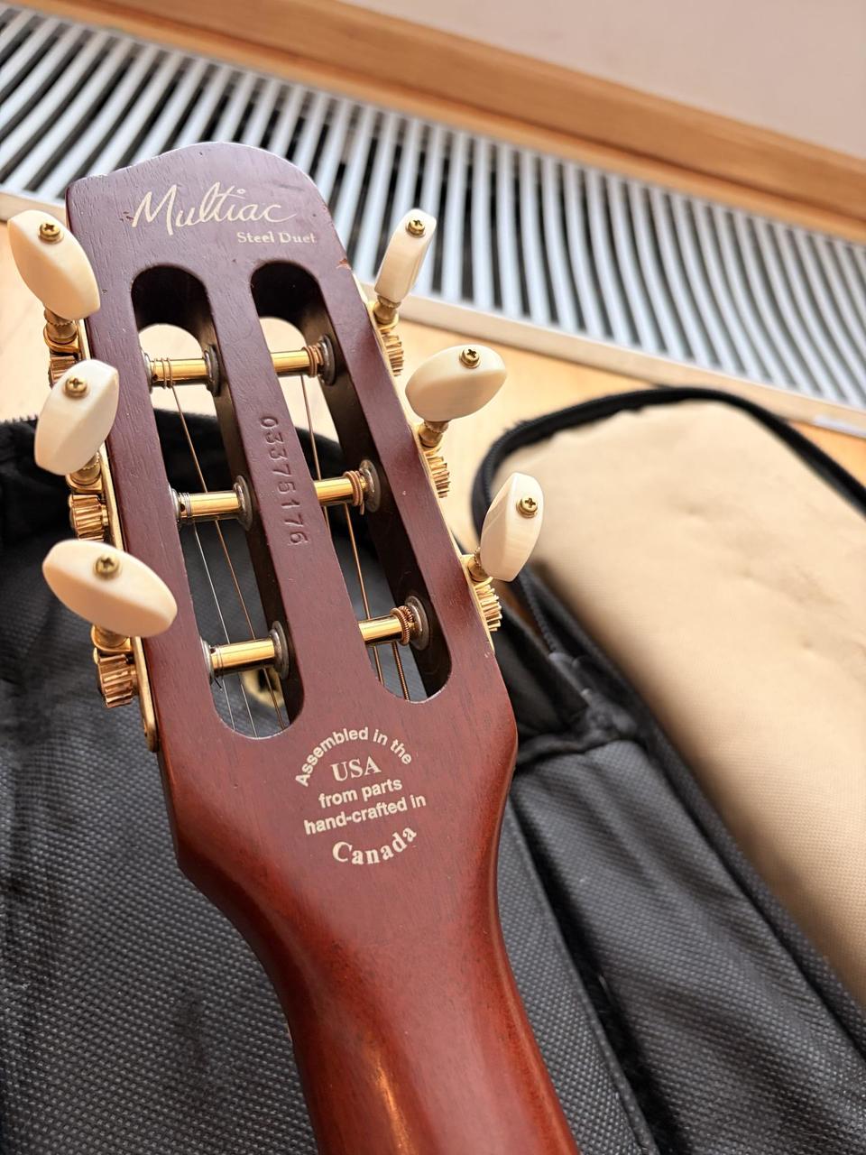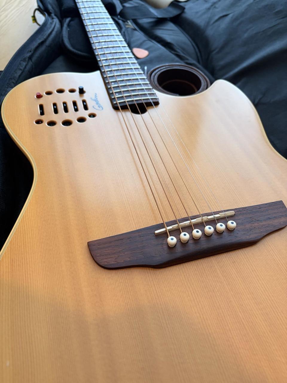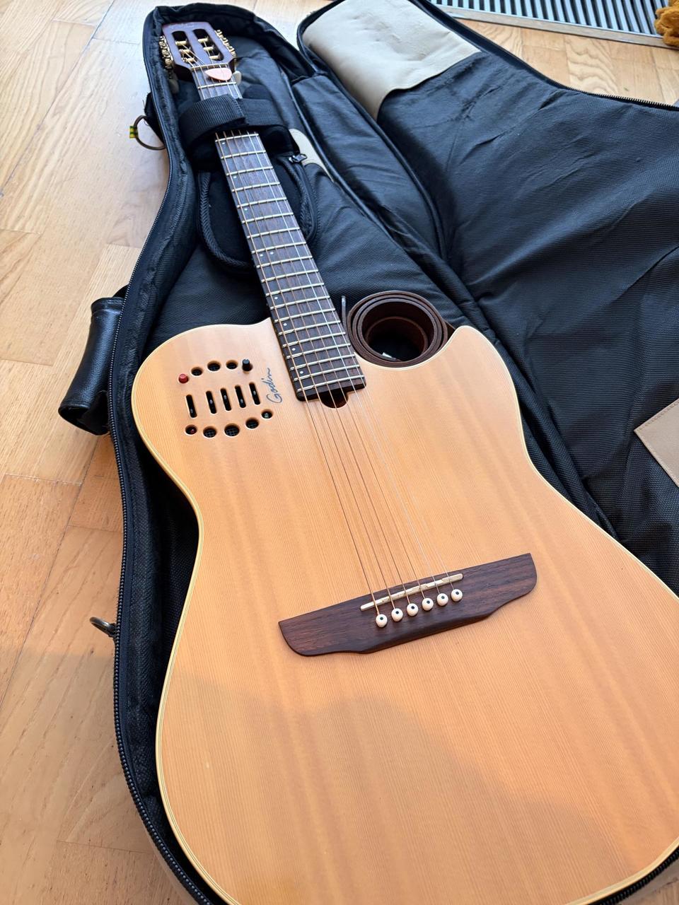 Prodám hybridní elektroakustickou kytaru Godin MultiAC - verze z roku 2005, kovové struny, bez synt. snímače. Perfektní zvuk přes aparát. Kytara v dobrém stavu, po větším servisu (přepražcování, seřízení). Včetně gig bagu (ten nese už větší známky užívání). Důvod prodeje - už hraju na jinou akustiku, takže přebývá.