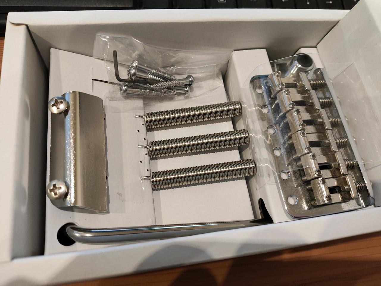 Koupeno v Aleximu v Listopadu 2024, měl jsem ho cca rok v kytaře, ale šrouby, pružiny, páka a zadní čelist jsou úplně nové, nepoužité, samotné tremolo je v podstatě jako nové, je to kvalitní ocel. Přesné rozměry viz odkaz na Aleximu.