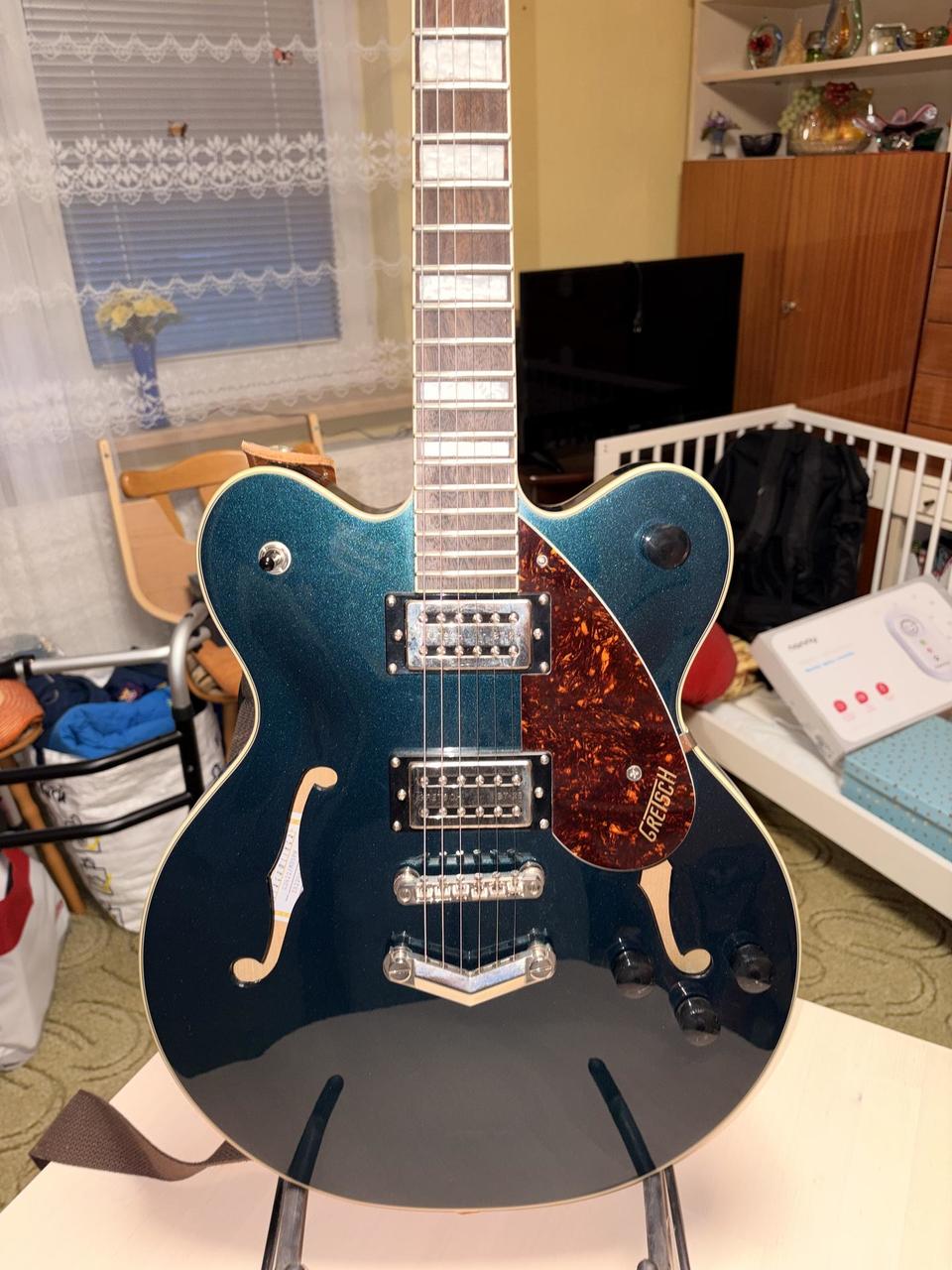 Prodám elektrickou kytartu Gretsch G2622 Streamliner CB V DC LRL v barvě midnight sapphire. Kytara byla pořízena v prosinci 2022. Je v perfektním stavu, ale bude potřebovat nové struny. Lazení drží. Popruh není součástí prodeje. Důvod prodeje - nevyužití - přechod na levnější telecaster.