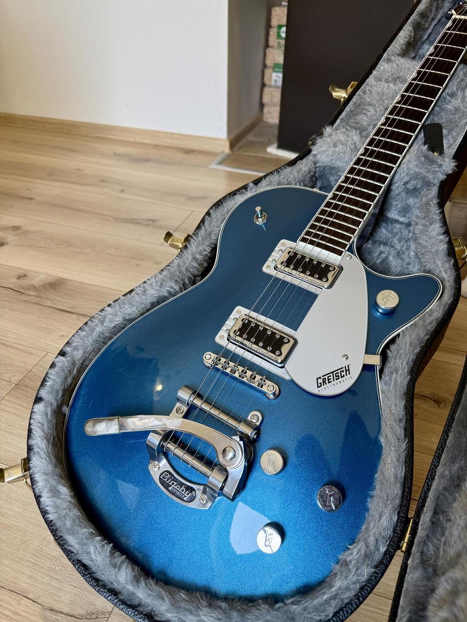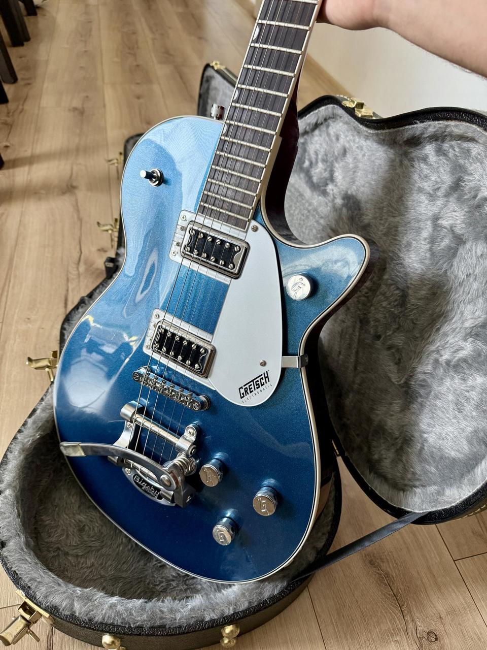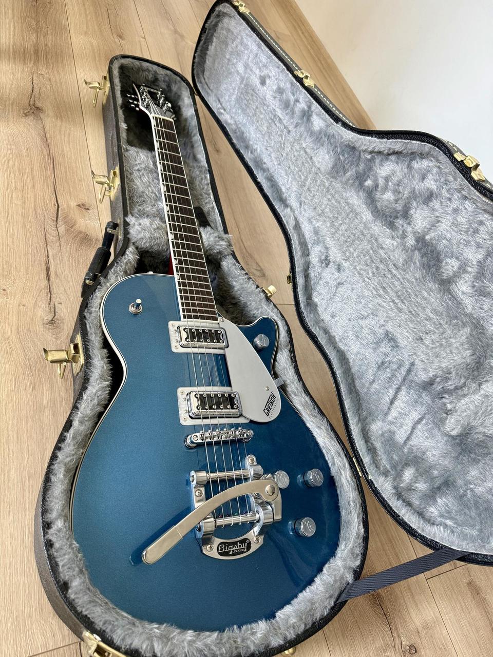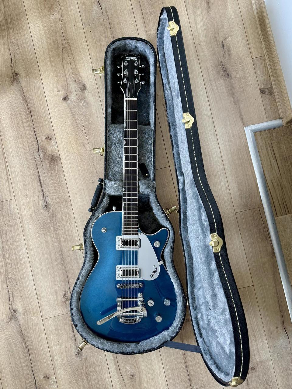 Gitara je vo výbornom stave, bez poškodení a plne funkčná. Hral som na nej 3 roky, bolo o ňu maximálne postarané, nosená neustále v púzdre. S gitarou som bol veľmi spokojný za tú cenu splnila všetky očakávania, hraná v kapele. Dôvod predaja: kúpa ďalšieho tvaru a typu gitary. Súčasťou je originálne pevné puzdro Gretsch G6238FT. Cena za komplet: 495 € (pôvodná cena 778 €). Gitara: https://www.muziker.sk/gretsch-g5230t-electromatic-jet-ft-sc-bigsby-walnut-aleutian-blue Púzdro: https://www.muziker.sk/gretsch-g6238ft-solid-body-hardshell-case