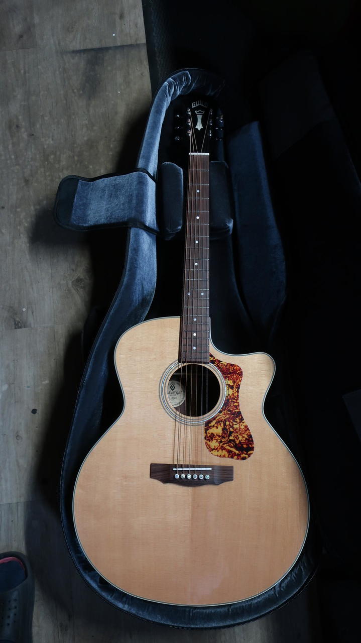 Specifikace • Elektroakustická kytara • 6 strun • Tělo: jumbo • Přední deska: masivní smrk sitka • Zadní deska a luby: masivní palisandr • Krk: mahagon • Hmatník: indický palisandr • Počet pražců: 20 • Lem: slonovina • Menzura: 25,5” • Nultý pražec: 44,5 mm • Materiál nultého pražce: kost • Ladicí mechaniky: Guild Die Cast • Elektronika: Fishman AP-1 • Kufr součástí: ano • Barva: Natural