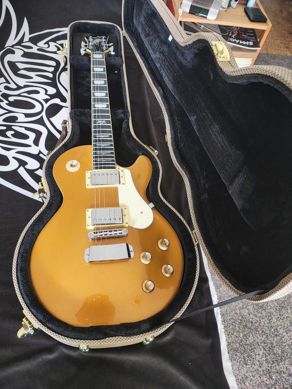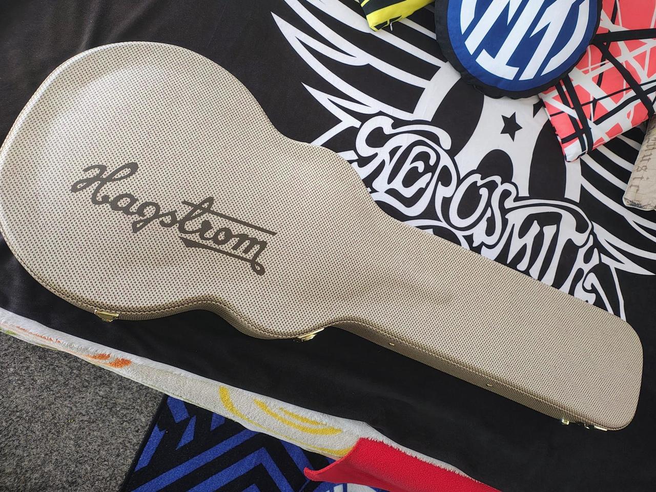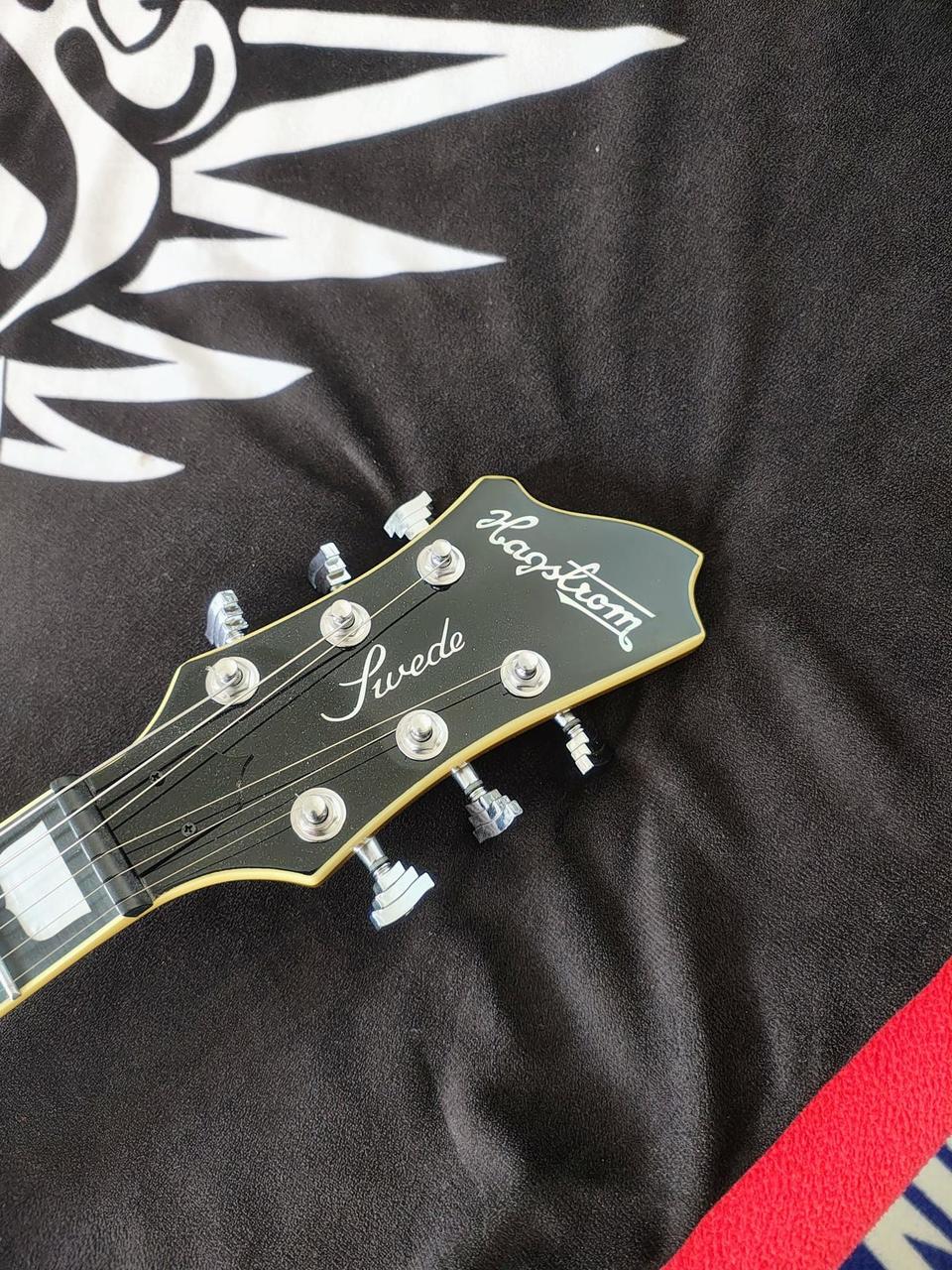 looks and plays great. included original case Selling due to disposal of my gear needed pick up in person, contact me via whataspp for more info, pics/ videos 605241449 Mahagonové tělo 3/4" javorová vrchní deska s prvotřídní dýhou z žíhaného javoru Vsazený mahagonový krk Hmatník z resinátoru Hmatník s logem Ivoroid Hagstrom "Crest" a lvy Hagstrom na 12. pražci Tloušťka krku na 1. pražci: 21 mm / 12. pražci: 22,5 mm Měřítko: 628 mm (24,75") Poloměr hmatníku: 14,4" Šířka nultého pražce: 43 mm Graph Tech Black TUSQ XL nultý pražec středních jumbo pražců z nerezové oceli Snímače: 2 dělené humbuckery Lundgren Design AlNiCo-2 č. 2 x Ovládání hlasitosti s přepínáním na dálkovém ovladači x Ovládání tónů s funkcí push/pull pro rozdělení cívek 3polohový přepínač Chromované mosazné vroubkované knoflíky Hagstrom ve tvaru "H" Slonovinová pickguard Můstek Tune-O-Matic s dlouhým chodem Napínací tyč krku s dvojitým účinkem H-expanderu Hlavy uzamykatelných strojů Hagstrom Struny: D'Addarío (.010 - .046) Barva: Zlatá Včetně pouzdra C-51