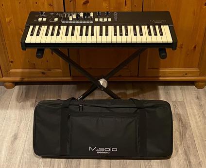 Prodám Hammond M-solo, černá verze, 100% stav, kupované v lednu 2025, v záruce, faktura k dispozici. Včetně originálního soft bagu a protiprachového povlaku.